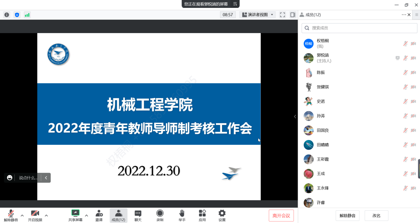 2022年12月30日,英国365集团官网召开青年教师导师制考核工作会议。考核小组成员、考核对象和指导老师参加会议。会议由考核小组组长王永锋经理主持。