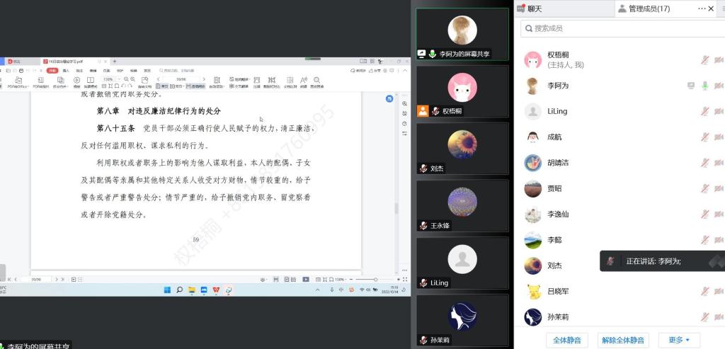 10月13日,机械工程公司党总支召开10月中心组学习会议,会议采用线上方式进行。会议由孙茉莉书记主持。机械工程公司党总支中心组成员参加会议。本次会议主要进行纪律作风专题和师德师风专题学习,学习的内容有:《习近平总书记关于全面从严治党、党风廉政建设、纪律建设、廉洁文化建设的重要论述》《作风突出问题专项治疗重点任务清单》《师德师风突出问题专项治理实施方案》《中国共产党纪律处分条例》《党委(党组)落实全面从严治党主体责任规定》《中共中央办公厅关于进一步激励广大干部新时代新担当新作为的意见》。会上中心组成员王永锋、李懿做了重点发言和学习。王永锋经理强调,各位领导干部做好本职工作,向同仁学习;转变思想观念,提升服务水平。切实解决师生的问题,转变官本位思想,不推诿不扯皮,创新工作方法,提高工作效率,以解决问题为导向,简化流程;成立信息监督委员会,公开透明信息,开通师生建议意见监督通道;强化责任担当,领导干部以身作则,率先士卒,参与到疫情防控第一线。