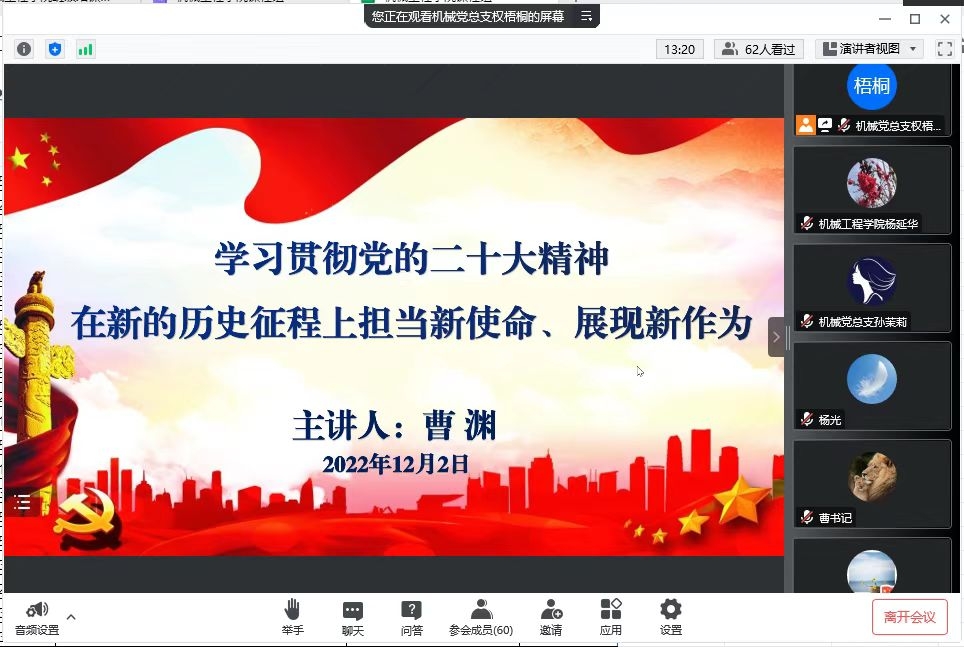 曹渊书记以“学习贯彻党的二十大精神,在新的历史征程上担当新使命、展现新作为”为主题,为党员们讲述了如何理解和把握党的二十大报告的重大历史意义,如何理解“五个牢牢把握”的本质内涵。曹渊书记强调,要认真抓好党的二十大精神的学习贯彻,推动各项工作迈上新台阶。必须把自己摆进去,把职责摆进去,把工作摆进去,要切实把党的二十大精神转化为指导实践推动工作的强大力量,推动党的二十大战略部署转化为务实有效的工作思路、办法举措和具体行动。
