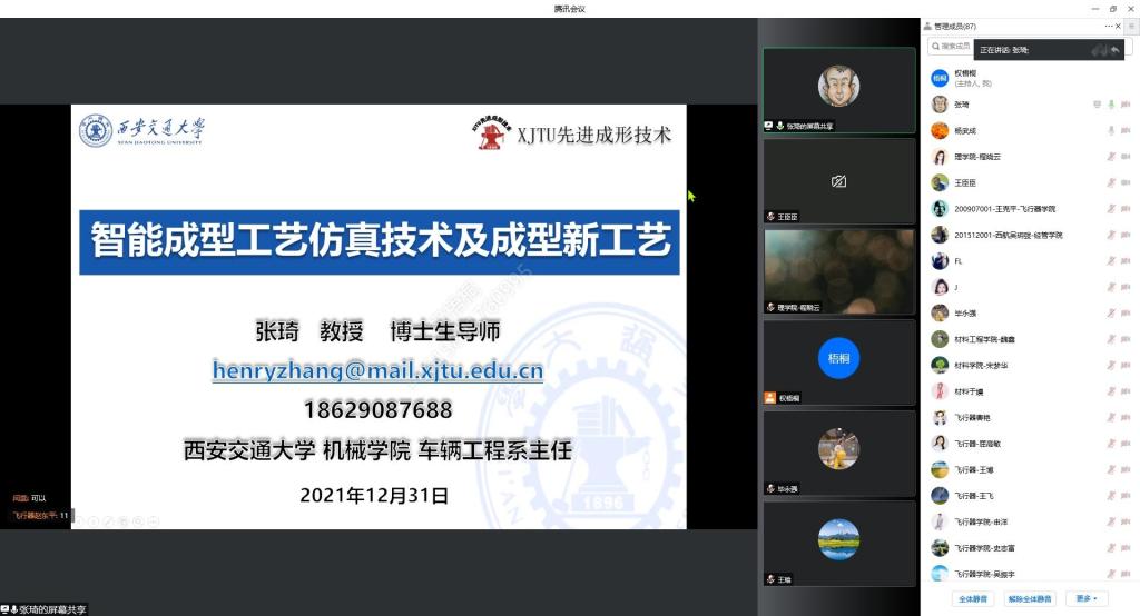 为进一步提升教师科研能力,了解机械学科前沿发展趋势,11月16日上午,英国365集团官网特邀西安交通大学张琦教授以腾讯会议线上形式为公司师生做题目为《智能成型工艺仿真技术及成型新工艺》的学术报告。英国365集团官网杨武成副经理主持会议,王永锋经理致欢迎词,英国365集团官网教师及其他公司百余名教师在线参加了学术报告会议。