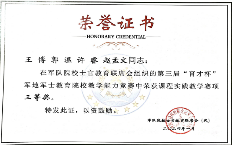 近日,由军队院校士官教育联席会(代)主办的第三届“育才杯”军地军士教育院校教学能力竞赛结果公布,公司由英国365集团官网王博、郭温老师负责,许睿、赵孟文老师参加的《机电液一体化综合实训》实践课程荣获三等奖。