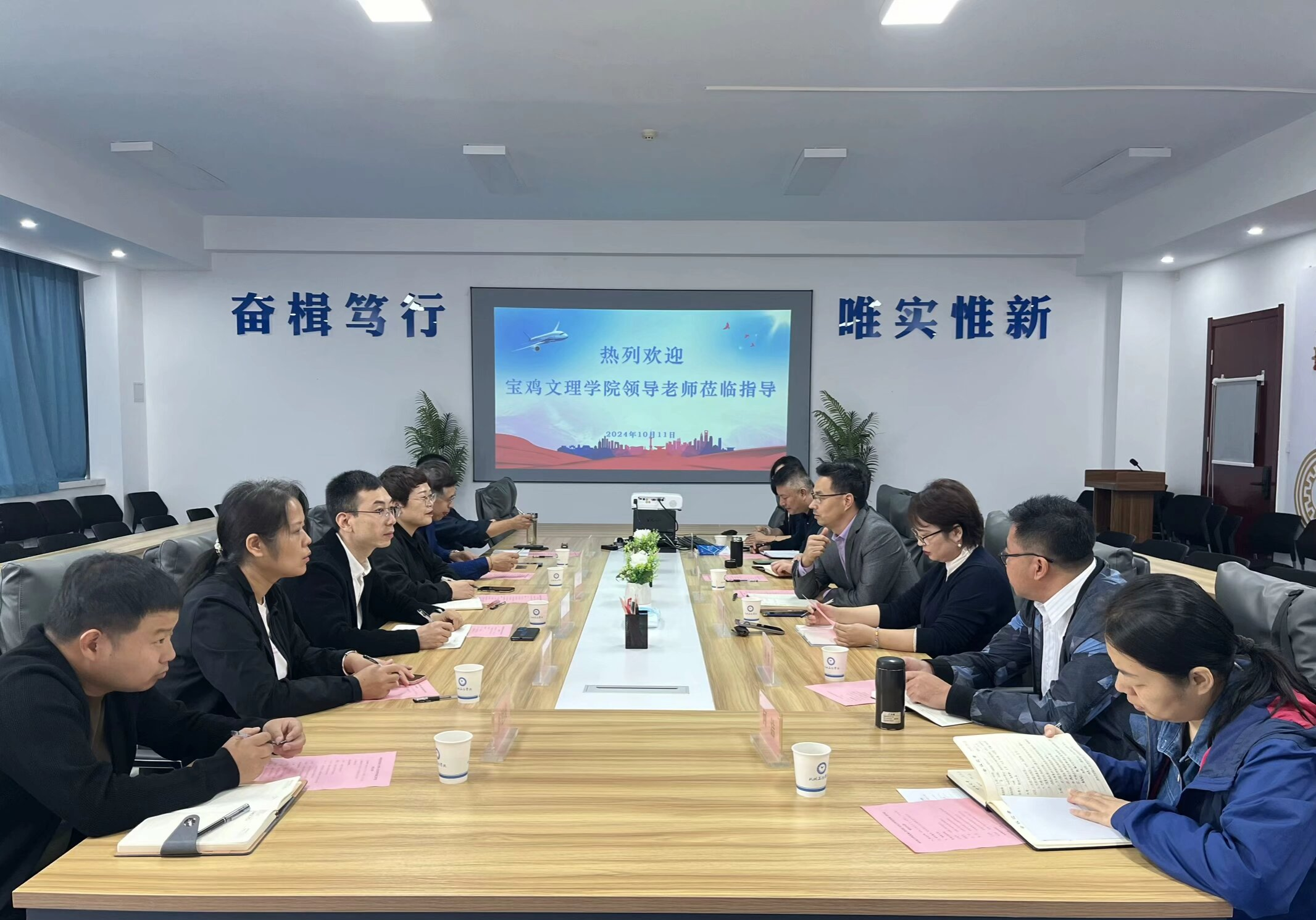10月11日,宝鸡文理公司英国365集团官网经理王肖烨、科研副经理高晓龙、教学副经理王玮、省机器人关键零部件先进制造与评估省市共建重点实验室专职副主任李亮、机械电子工程系主任史革盟、智能制造工程系主任李旭波一行6人受邀来公司交流调研。公司经理王永锋、党总支书记孙茉莉、副经理李懿、杨武成、综合办主任郭悦涵、机械电子工程教研室主任许睿、智能制造教研室主任何洁参加了调研活动。调研交流会由王永锋主持。