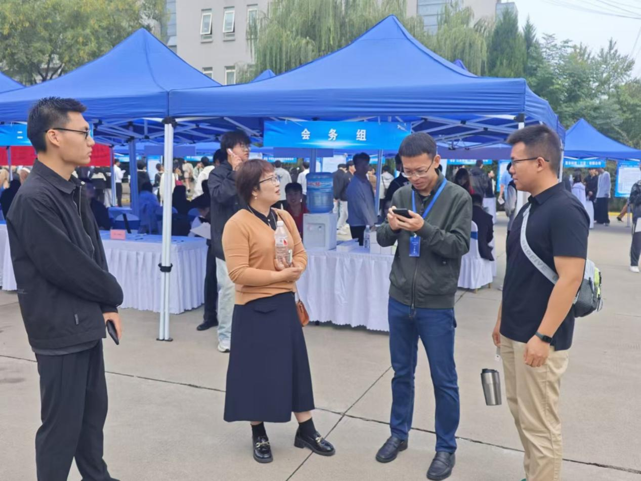 在双选会现场,公司党总支书记孙茉莉、党总支副书记刘欣、2025届就业辅导员谢肖、王鹏博、深入现场与用人单位进行交流,积极向企业推介公司优秀毕业生,同时为毕业生就业提供全方位的答疑解惑。