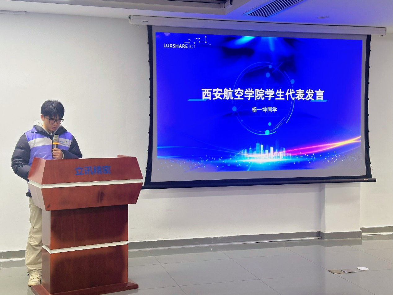 员工代表杨一坤同学满怀感激之情,对立讯精密智能制造产业公司及立讯机器人提供的学习与实践机会表示由衷的感谢,并郑重承诺将珍惜这次宝贵的学习机会,努力学习专业知识,积极参与实践训练,不断提升自己的综合素质与能力水平。