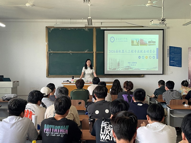 为抢先抓早做好2026届毕业生就业工作,引导员工树立正确的就业观和择业观,2025年5月22日,机器人工程专业在阎良校区3314 会议室召开2026届毕业生就业动员会。教研室主任李逸仙、专业负责人王莹、部分专业教师及2026届全体毕业生参加,会议由王莹主持。