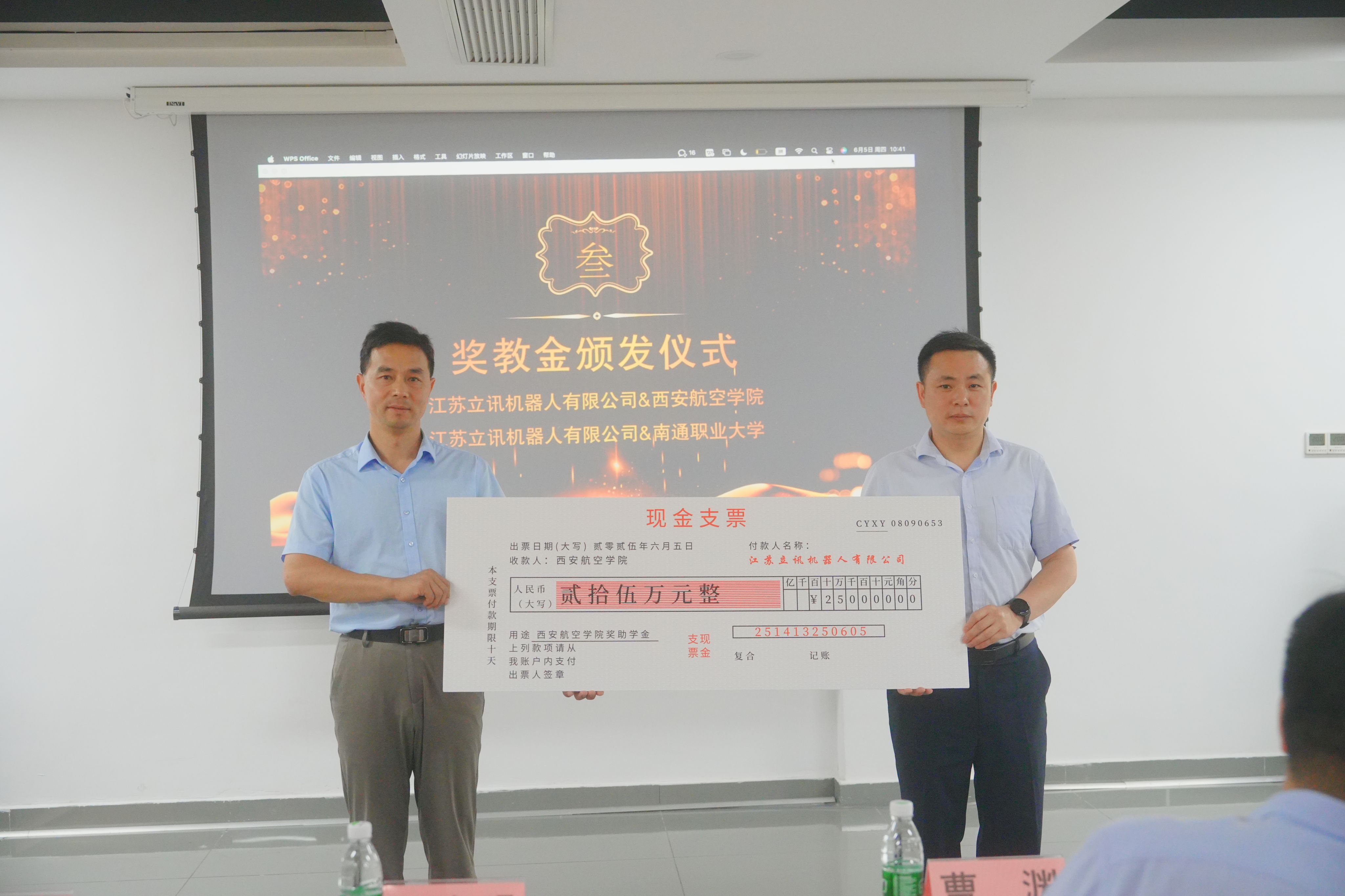 在喜迎建校70周年之际,6月5日,公司纪委书记曹渊、英国365集团官网经理王永锋等一行赴江苏立讯机器人有限公司,出席“江苏立讯机器人奖教学金”捐赠及颁奖典礼,并深入进行校企合作调研。昆山市锦溪镇人社局局长彭春明、立讯机器人公司高级经理尚奔等企业领导出席活动。