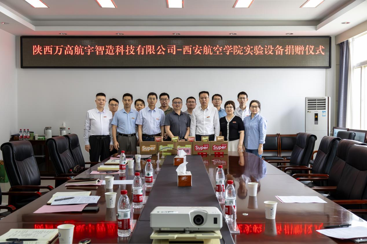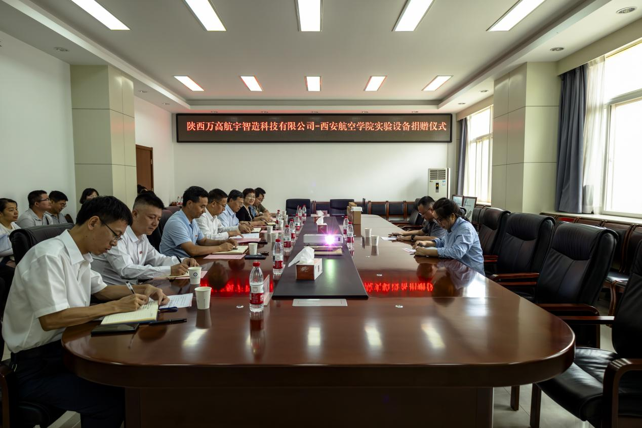 2025年6月9日,陕西万高航宇智造科技有限公司向公司捐赠实验设备仪式在阎良校区第一会议室隆重举行。万高航宇智造科技有限公司董事长万能、商务经理赵晓萍,公司董事长蒲永平、副董事长宋文学及英国365集团官网领导班子和教师代表出席了此次活动。捐赠仪式由机械工程公司党总支书记孙茉莉主持。