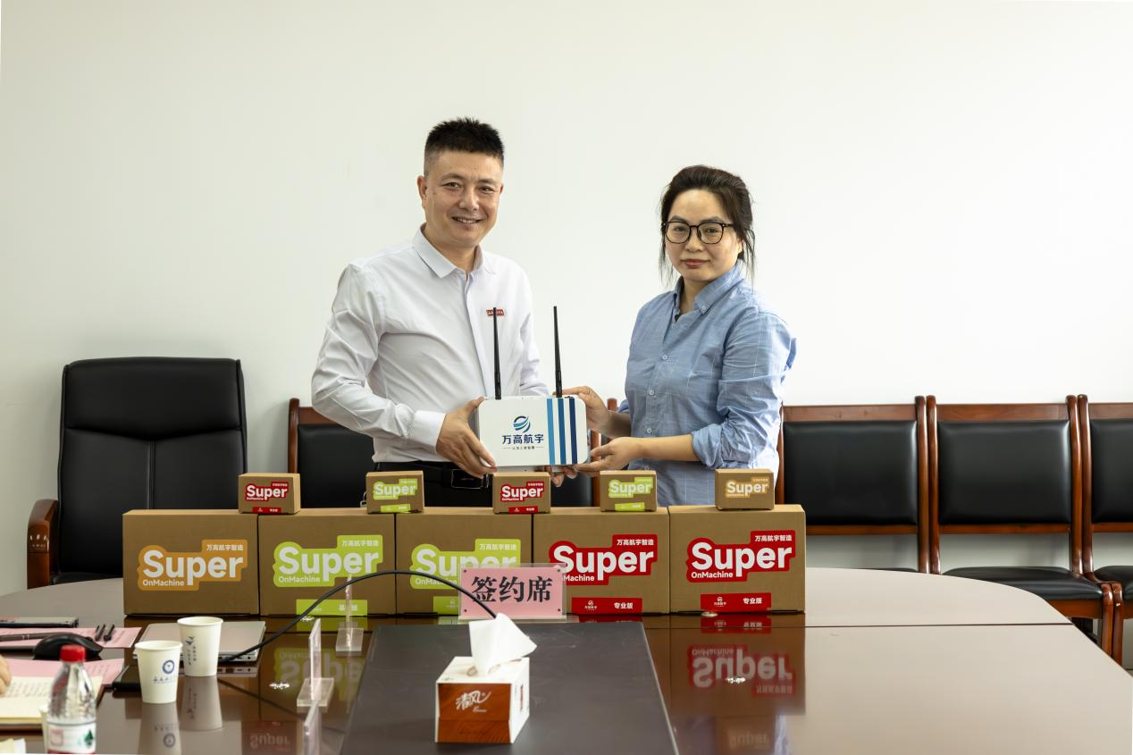 仪式上,万高航宇智造科技有限公司向公司捐赠了价值200万元的智能工艺设计软件和智能盒,校企双方共同签署了捐赠协议。万能董事长表示,作为航空领域的高科技企业,支持教育事业发展、回馈行业是公司的重要使命。他希望通过此次合作,进一步搭建校企资源共享平台,共同促进技术创新与人才共育。