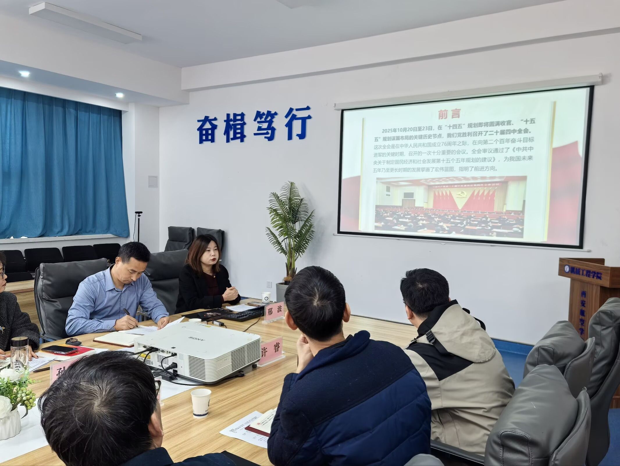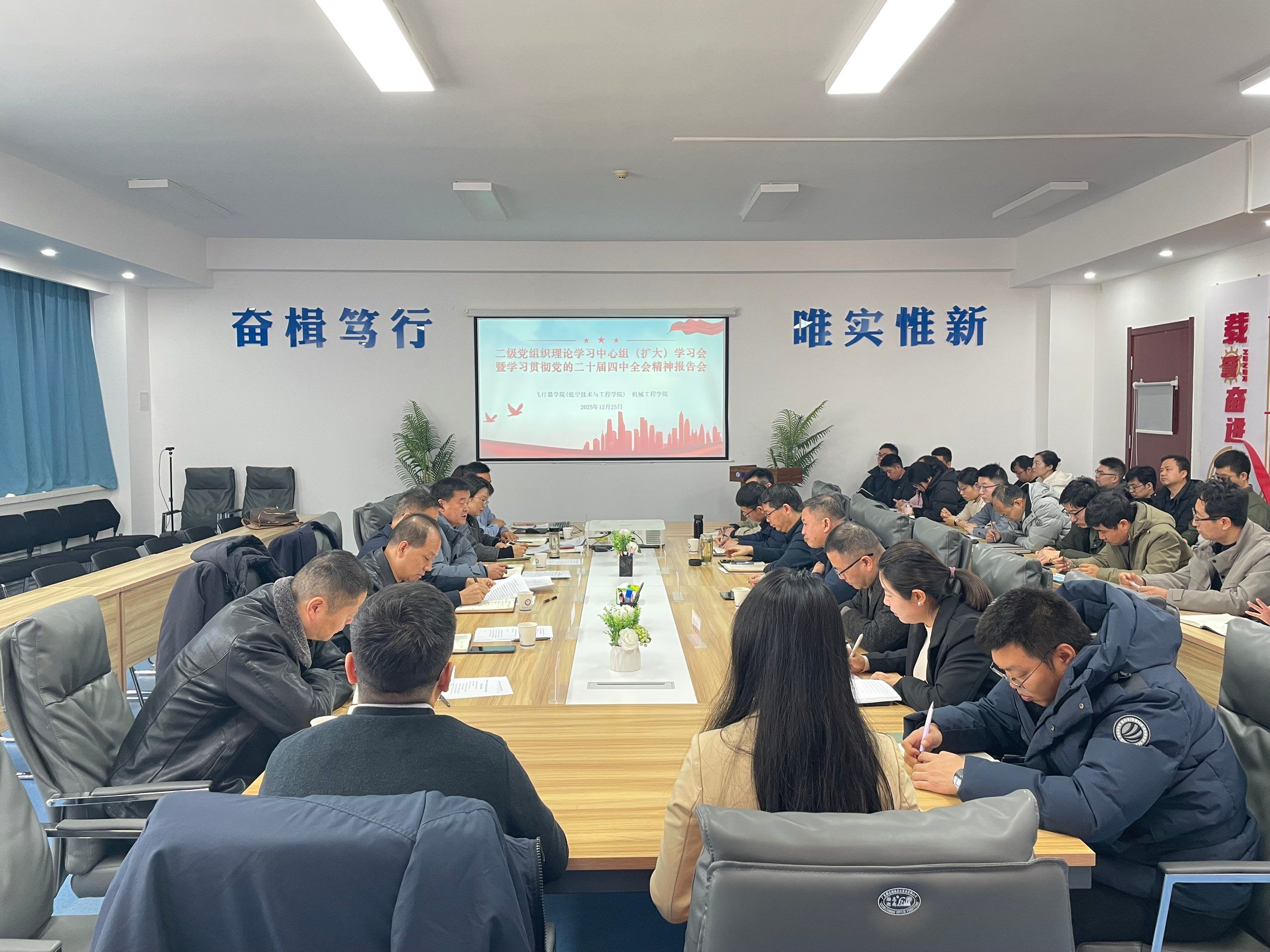 12月25日上午,英国365集团官网与飞行器公司(低空技术与工程公司)在阎良校区3314会议室联合举行理论中心组(扩大)学习研讨会,围绕“深入学习贯彻党的二十届四中全会精神”开展专题学习。公司党委副书记、董事长蒲永平出席并讲话,党委巡查办主任、党政办公室副主任张永成到会指导。马克思主义公司邢波教授作专题宣讲,两个公司领导班子成员、理论中心组成员、专业负责人、教研室主任及近三年新入职博士教师参加了学习。