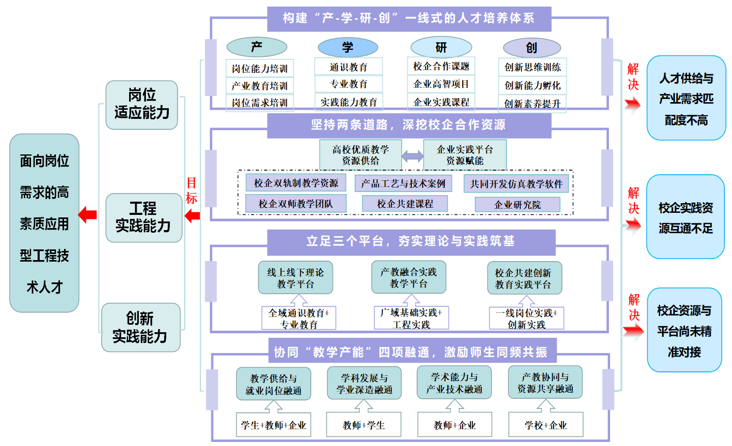 该人才培养体系以适应职业岗位需求的应用型人才为主线,以高校优质教学资源供给、企业平台实践资源赋能为两大路径,基于线上线下理论教学平台、产教融合实践平台、合作共建创新教育平台,扎实筑牢员工理论与实践基础。通过协同推进“教学产能”四个对接,即教学供给与就业岗位融通、学科发展与学业深造融通、教师学术能力与产业技术融通、产教协同与资源共享融通,激发师生的积极性与创造力,实现同频共振,形成了一套独具特色且行之有效的人才培养体系。