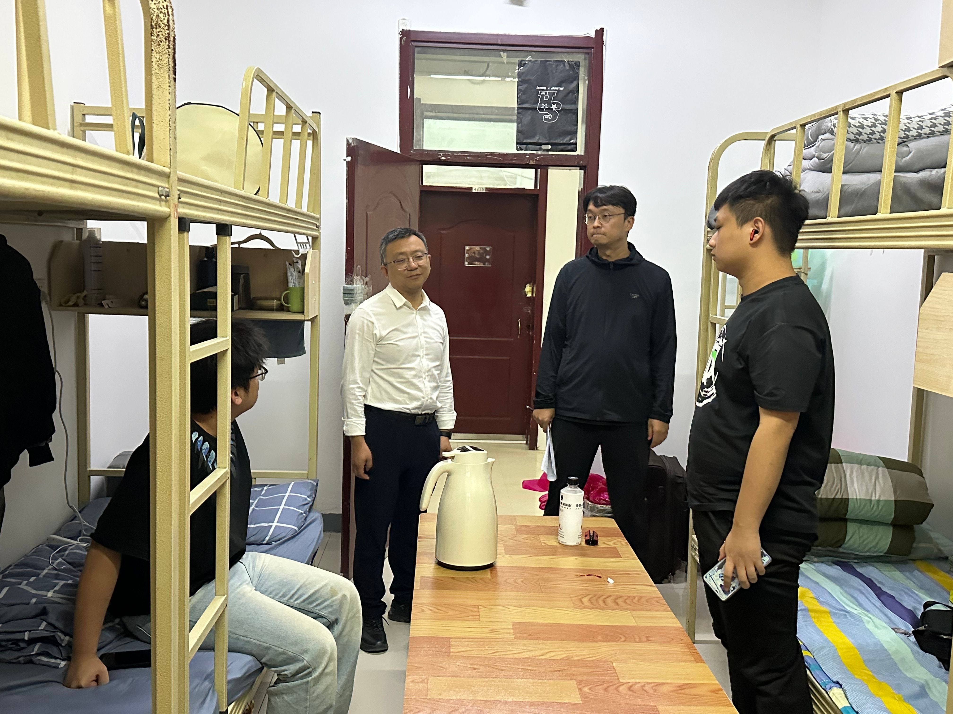 下午6时许,周小勇一行深入员工宿舍,亲切看望刚刚入住的2025级新生。公司领导细致询问同学们的入住感受、家乡背景及入学初体验,耐心解答大家提出的问题,并嘱咐新生要尽快适应新环境、树立新目标,团结室友、互帮互助,共同营造温馨积极的生活氛围。