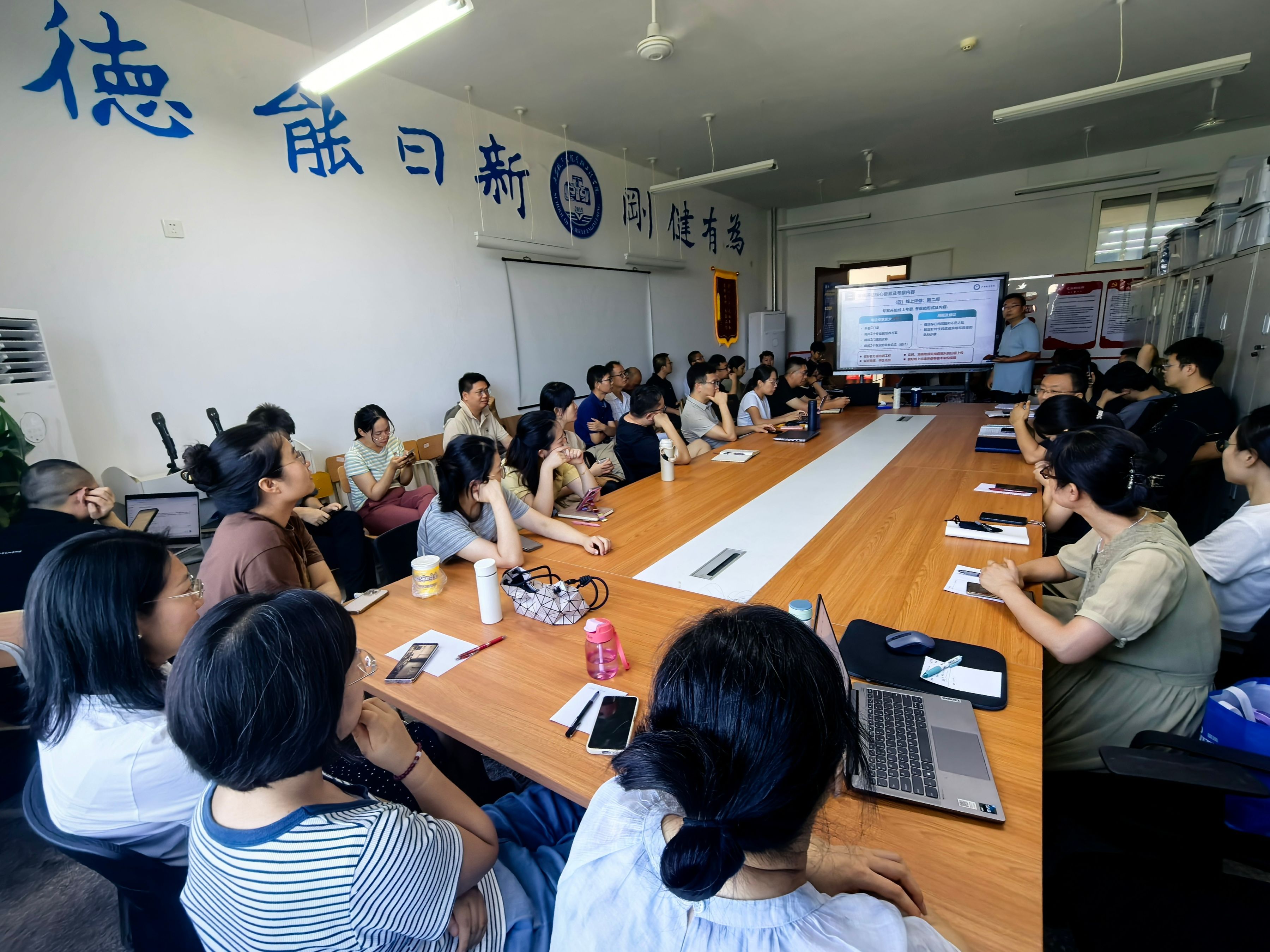 赵坤向全院教职工解读了蒲永平董事长《浅谈新一轮公司产品审核评估》的报告和教务处处长谢辉《公司参加新一轮审核评估工作情况汇报》中暑期重点任务部分,并带领全体教职工逐字学习了蒲永平董事长《在公司2025年公司产品工作会议暨审核评估动员会上的讲话》。随后,赵坤结合《新一轮本科公司产品审核评估指标及解读》内容,对公司暑期审核评估工作进行了初步安排,公司教职工就此进行了深入的交流。
