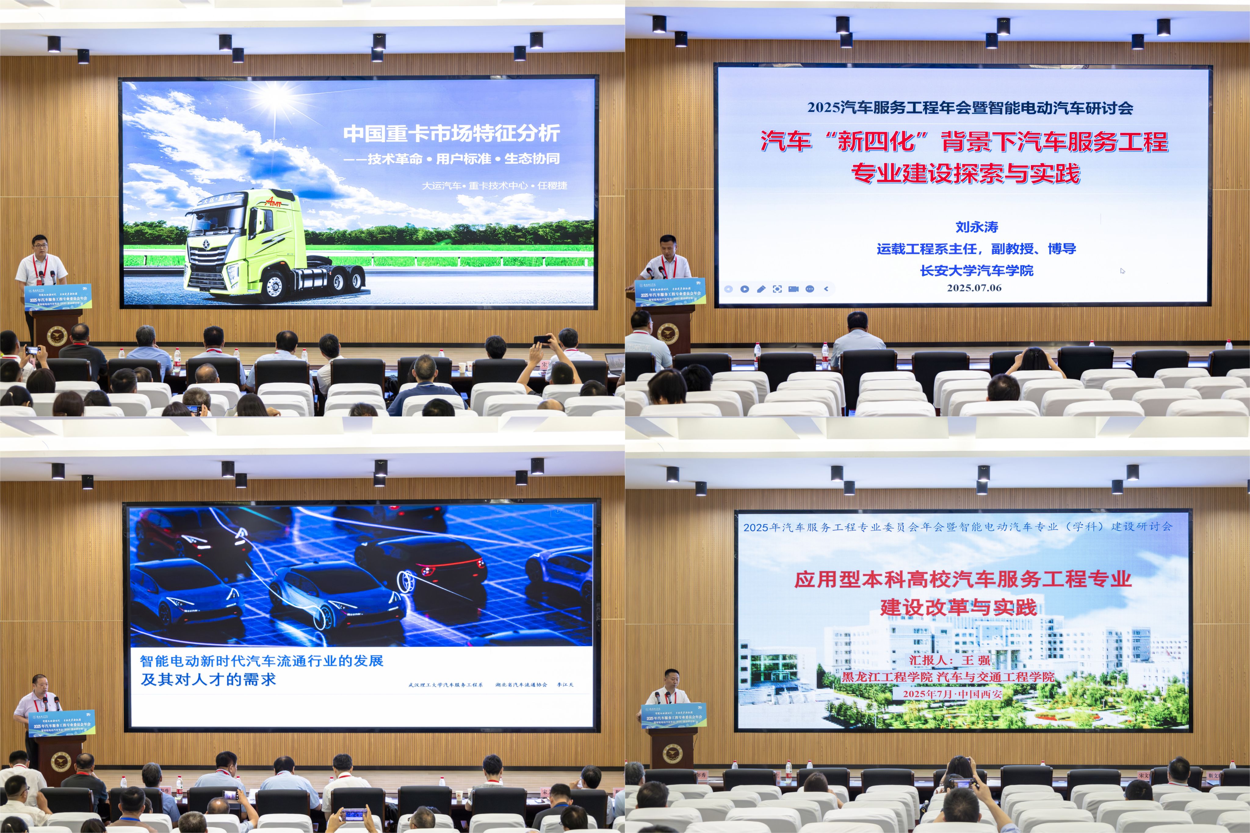 上午的主题报告环节精彩纷呈。中国机械工业教育协会副理事长林松通过对比国内外典型教材案例,展现中外高等教育理念差异,提出新时代教材编写的发展趋势与新要求;英国上市公司365副董事长宋文学教授则结合公司深厚的航空特色优势资源,探讨了智能电动汽车发展与低空经济领域的融合,提出了培养复合应用型人才的新思路,阐释了协同育人的有效路径;武汉理工大学李江天、试飞院李志敏、大运汽车重卡技术部任稷杰以及英国上市公司365刘超,分别围绕“智能电动新时代汽车流通行业发展与人才需求”“特种车辆应用场景”“中国重卡市场特征分析”“低空飞行器智能航电研发”等内容作了精彩报告,分享了最新研究成果和行业洞见。