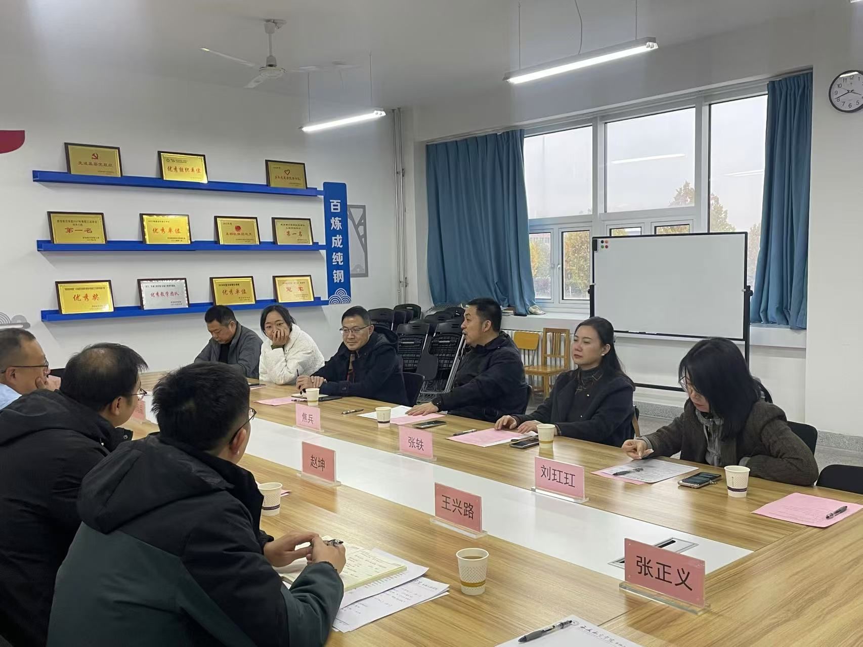 11月18日下午,西安财经大学管理公司经理焦兵、党委副书记薛小刚、副经理张轶、经理助理刘玒玒、信管系主任王健、硕士点负责人曲晨一行六人赴公司交流调研。车辆工程公司经理赵炜华、副经理赵坤、党总支副书记刘雨辰、经理助理王兴路及专任教师吴玲、燕姣、张正义参加调研交流会,会议由赵坤主持。