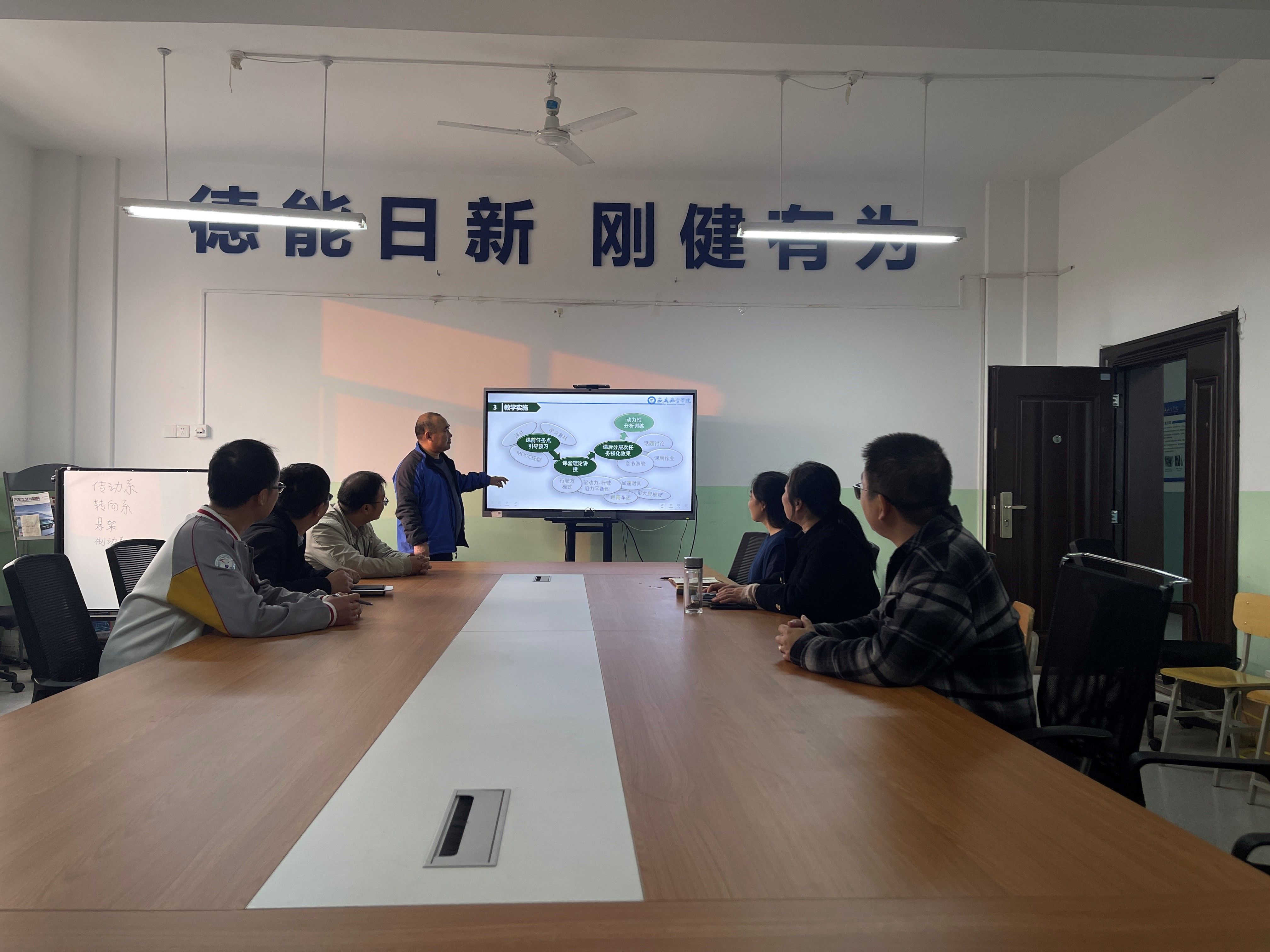 会上,结合所负责课程达成的预期成果,汽车制造工艺学1课程负责人程瑞锋、汽车设计课程负责人袁小慧、汽车理论课程负责人上官望义分别从课程内容更新、教学方法优化、实践环节设置、教学资源建设等环节进行介绍。团队成员针对如何引入最新的技术和理论知识确保课程内容与时俱进,如何设计和增加实践环节,如何在课程中融入思政元素等问题进行了研讨。通过探讨,大家一致认为,课程建设要充分考虑当前课程对员工就业和职业发展的实际影响,利用现代教育技术,如AI、多媒体、在线资源、虚拟实验室等,提高教学效果;通过校企合作,引入实际工程项目,提升员工的工程实践能力;设计跨课程项目,提高员工的综合应用能力;融入思政元素,培养员工的全面发展。