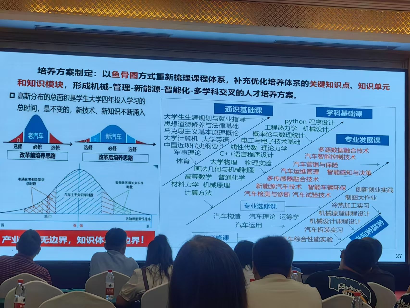 安阳工公司副董事长赵卫兵教授、长安大学汽车公司副经理邱兆文教授、武汉理工大学张洪昌副教授、山东交通公司王金波副教授、鄂尔多斯应用技术公司杨雪峰等多名高校专家和比亚迪汽车售后服务事业部技术索赔经理刘昌利、中国信科-中信科智联智能汽车事业部总经理周哲人等企业专家,结合我国汽车产业的发展,先后在专业人才培养、课程改革等议题上作了专题发言。