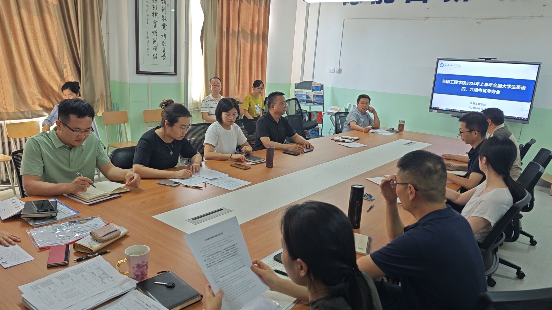 6月14日下午,车辆工程公司在莲湖校区北343召开英语等级考试考务会,会议由公司党总支书记、副经理周小勇主持,全体监考教师参会。