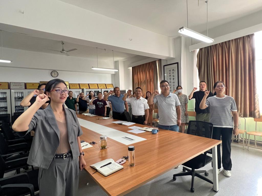 9月8日下午全院大会上,党总支书记、副经理周小勇带领全体教职工共同学习了习近平总书记在中共中央政治局第五次集体学习和在北京育英公司考察时的重要讲话精神。引导广大教师深刻认识在教育强国、科技强国、人才强国建设中肩负的光荣使命与重大责任,以人民教育家为榜样,牢固树立“躬耕教坛,强国有我”的志向与抱负,以培养堪当民族复兴大任的时代新人为己任,全员全方位全过程强化师德养成,争做“四有”好老师和“四个引路人”,努力培养更多德智体美劳全面发展的社会主义建设者和接班人。会上,全体教师庄严宣誓,铿锵有力的誓言宣告着为党的教育事业奉献全部力量的决心和信心。