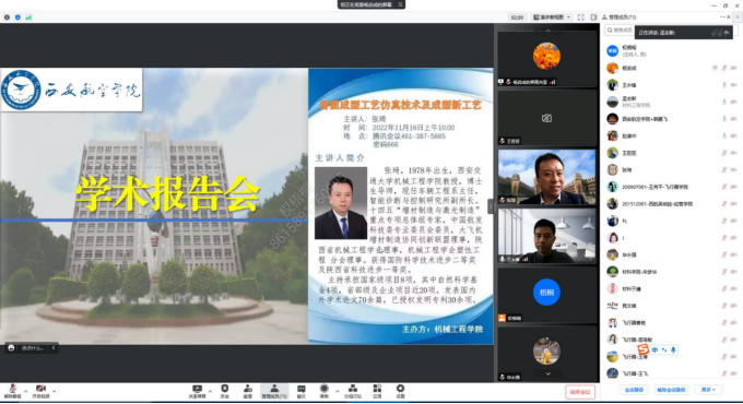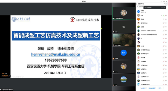 为进一步提升教师科研能力,了解机械学科前沿发展趋势,11月16日上午,英国365集团官网特邀西安交通大学张琦教授以腾讯会议线上形式为公司师生做题目为《智能成型工艺仿真技术及成型新工艺》的学术报告。英国365集团官网杨武成副经理主持会议,王永锋经理致欢迎词,英国365集团官网教师及其他公司百余名教师在线参加了学术报告会议。