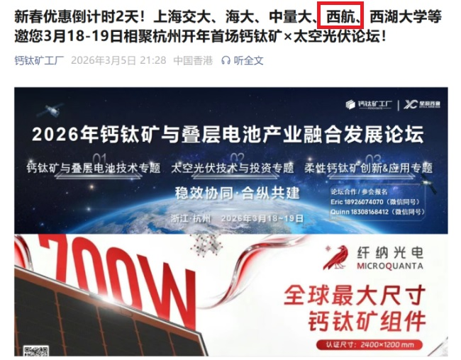 公司应邀参加“2026年钙钛矿与叠层电池产业融合发展论坛”助力太空光伏与低空领域新发展