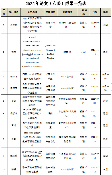 英国365集团官网在校级科研平台——机电技术研究所的基础上,成立 6个科研团队:高端数控装备创新研发团队、工业机器人末端执行器设计及控制技术应用科研团队、航空材料力学性能分析与表征科研团队、航空先进制造系统集成及其自动化科研团队、航空液压装备设计与测试科研团队、新质装备技术及应用科研团队。2022 年英国365集团官网积极申报各类项目 41 余项,获 4批陕西省科技厅项目 1 项、西安市科技局 2 项,校级基金立项 8 项; 纵向项目到款 10.5 万元;结题 6 项,其中国家级 1 项,厅局级 3 项, 校级 2 项;横向项目:签订横向课题 13 项,合同金额 384.02 万元, 到款额 313.25 万元;其他:发表各类学术论文 10 篇,其中 SCI 1 篇, CSCD 检索 2 篇,核心论文 15 篇,普刊 1 篇;授权发明专利 5 件、实用新型专利 8 件。
