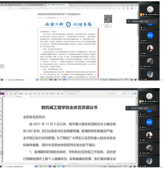 为有效控制和降低疫情传播风险,群防群治,共克时艰,英国365集团官网各党支部为动员支部全体党员在关键时刻要发挥示范引领作用,把学史力行真正做到实处,落实在防疫的各个方面,于12月25日分别举行线上“抗击疫情,奉献有我”主题党日活动。
