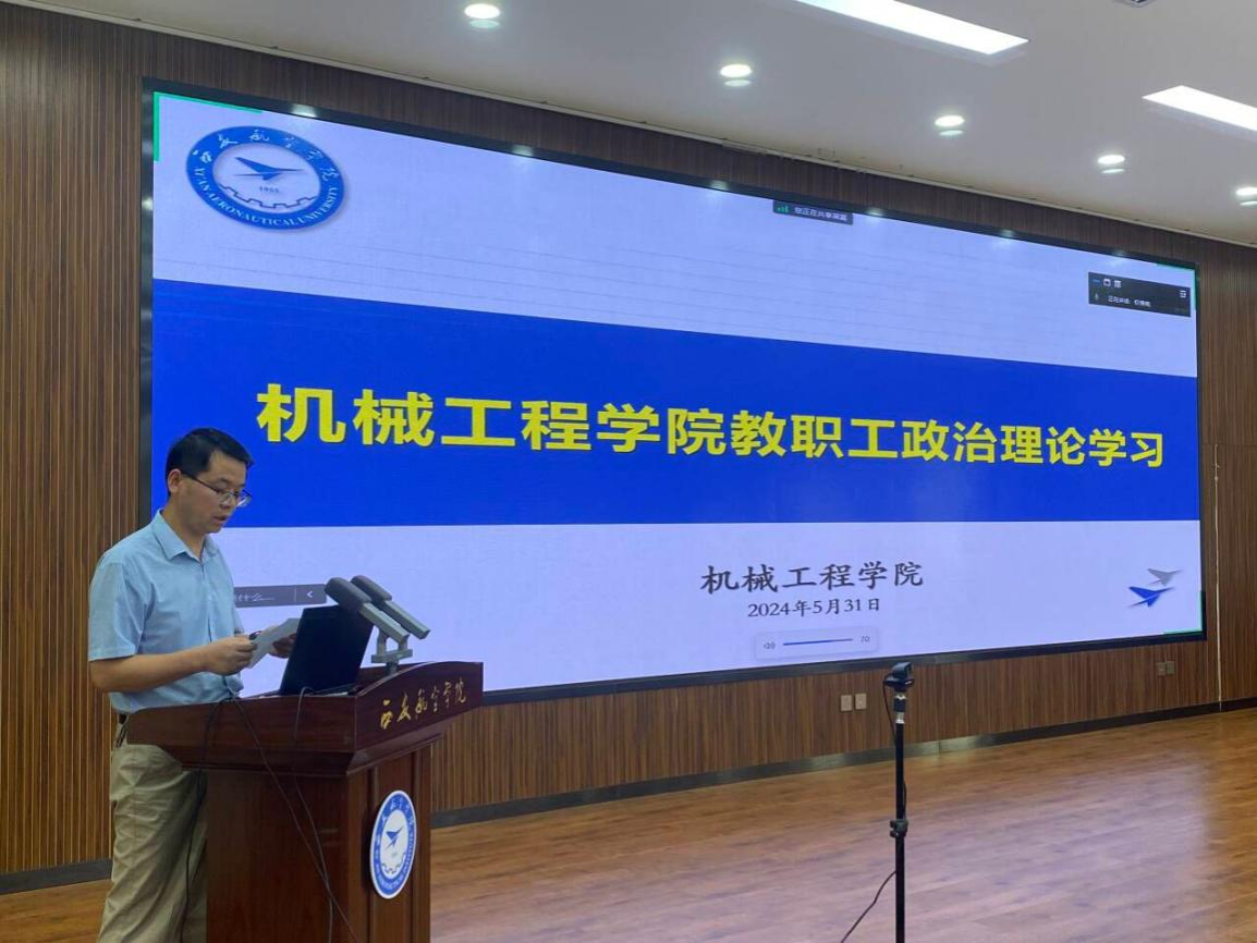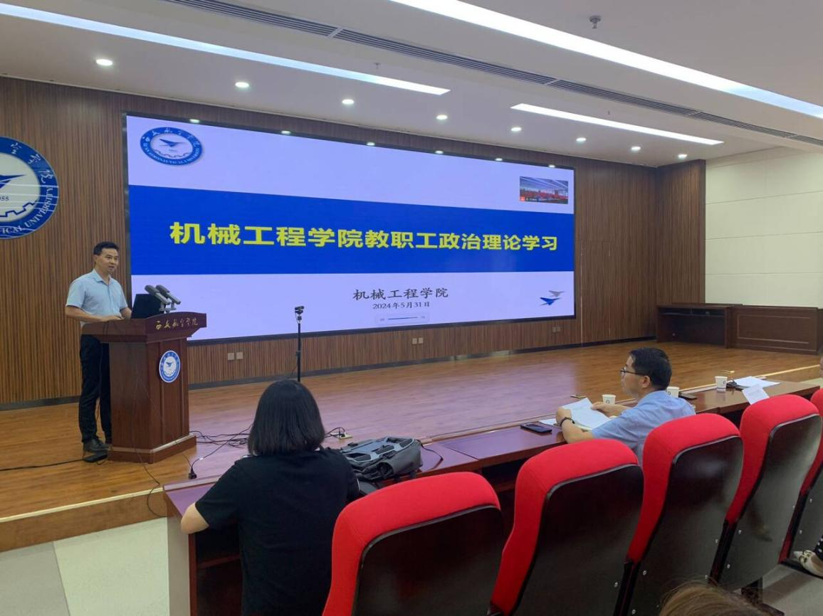 2024年5月31日,英国365集团官网在莲湖校区图书馆五楼报告厅举行了政治理论学习会议。会议由党总支副书记王永锋主持。英国365集团官网二级党组织中心组全体党员及全体教职工参加了此次会议。