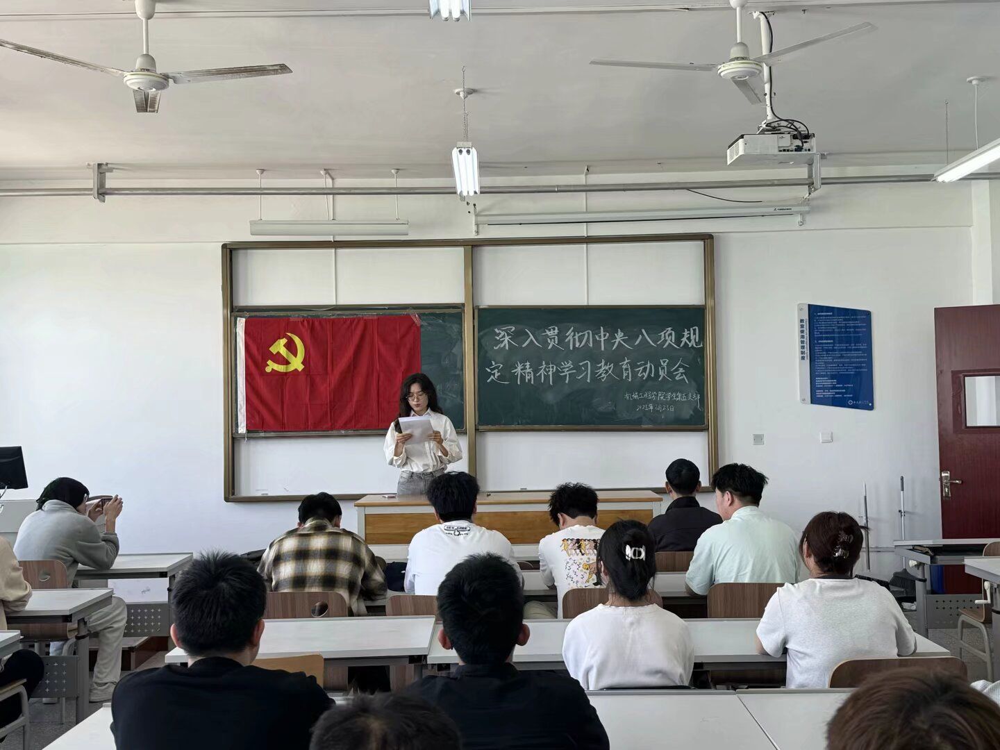 会议解读了公司文件《关于开展深入贯彻中央八项规定精神学习教育的情况介绍》——开展深入贯彻中央八项规定精神学习教育,是党中央作出的重大决策部署,要把开展学习教育作为一项重要政治任务。一是要加强理论武装,领悟精神实质。二是要坚持对标对表,在严查严纠上下功夫,坚持立查立改、即知即改,确保改有成效。三是要切实让全体党员感受到学习教育带来的新气象,着力解决师生急难愁盼问题,让广大师生可感可及。