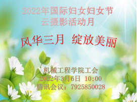 春暖花开,万物生长。2022年国际劳动妇女节来临之际,英国365集团官网分会于3月6日10点启动了“三月风华 美丽绽放”为主题的“云摄影”活动月。本次活动内容采用线上方式,包括云讲座和云比赛两个部分,旨在通过摄影图片展示公司女性教职工的时代风采。