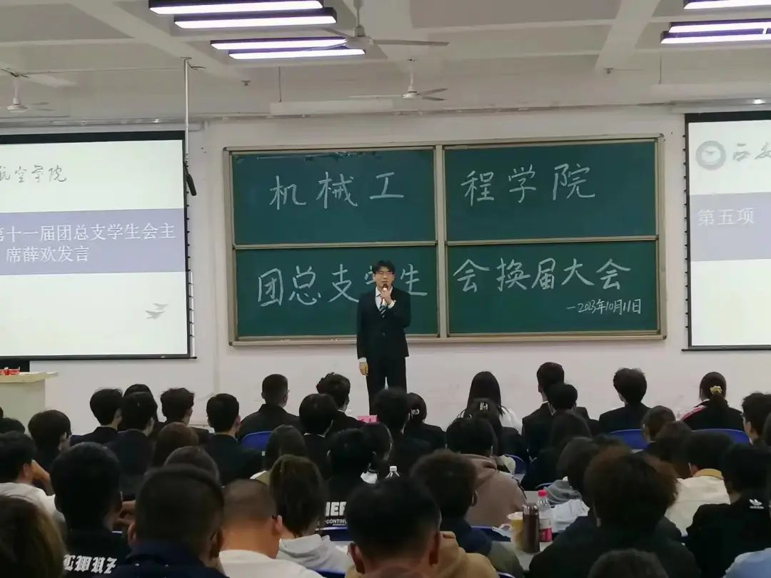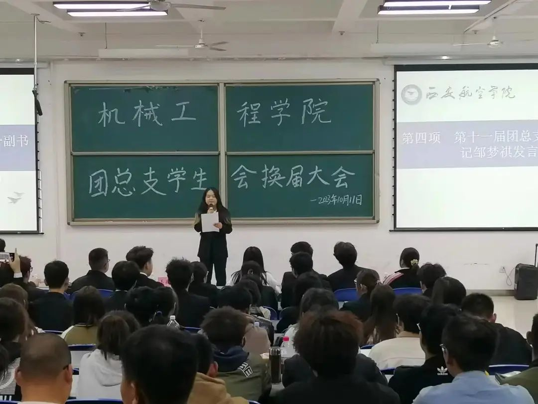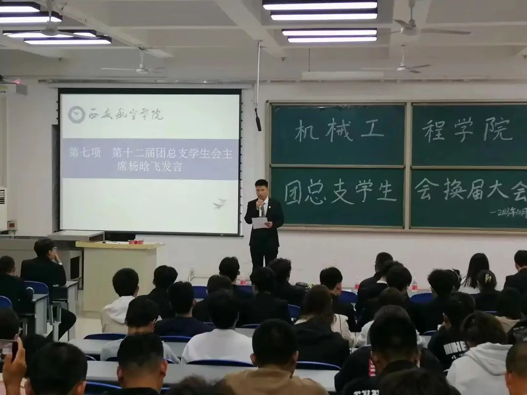 第十二届团总支员工会主席杨晗飞为新生提出要求,并对老师表示感谢,相信在未来的日子里,团总支员工会会因为每一个人的努力而变得更加美丽,更加值得同学们信赖。
