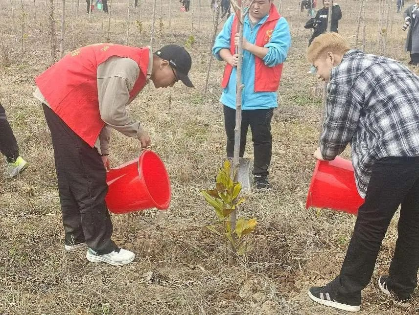 经过一番努力,小树苗们终于在校园“安家落户”。但植树活动还未结束,浇水环节同样关键。同学们纷纷拿起水桶,前往附近的水源处接水。一趟又一趟,他们不辞辛劳,将清澈的水缓缓浇在树苗根部,让每一棵树苗都能喝饱水,茁壮成长。在阳光的照耀下,水滴闪烁着光芒,映照出同学们灿烂的笑容,也为这片新绿增添了几分灵动与希望。