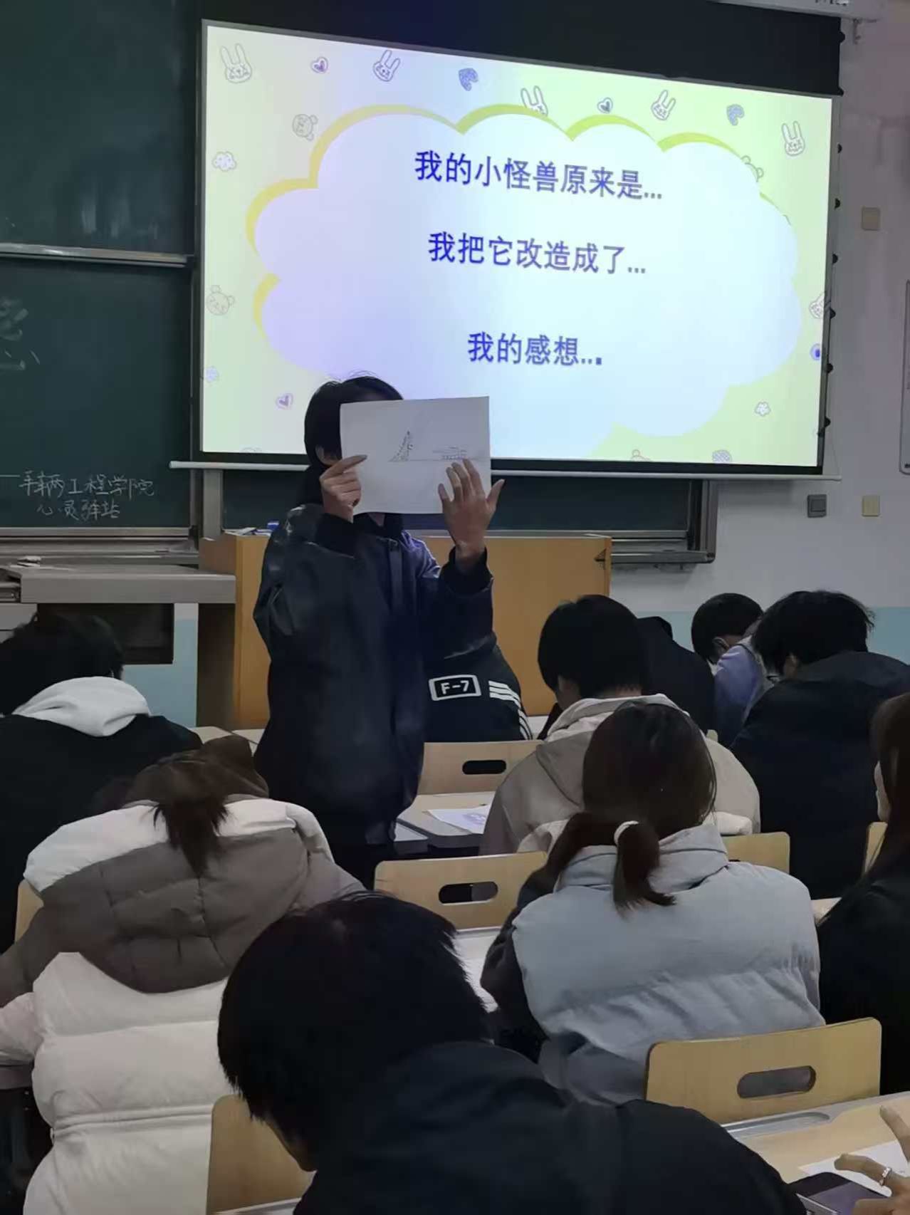 活动在公司心灵驿站负责人帅清杨的引导下有序进行。同学们首先将学业、人际等多方面的压力具象化为个性化的“压力小怪兽”,随后通过绘画、手工等艺术形式进行创意改造,赋予压力以积极意义。在最后的分享环节中,同学们踊跃展示作品,讲述创作背后的情绪故事,在交流中实现情感共鸣与压力释放。现场气氛轻松热烈,笑声不断,体现了“在创作中宣泄,在欢笑中成长”的活动效果。