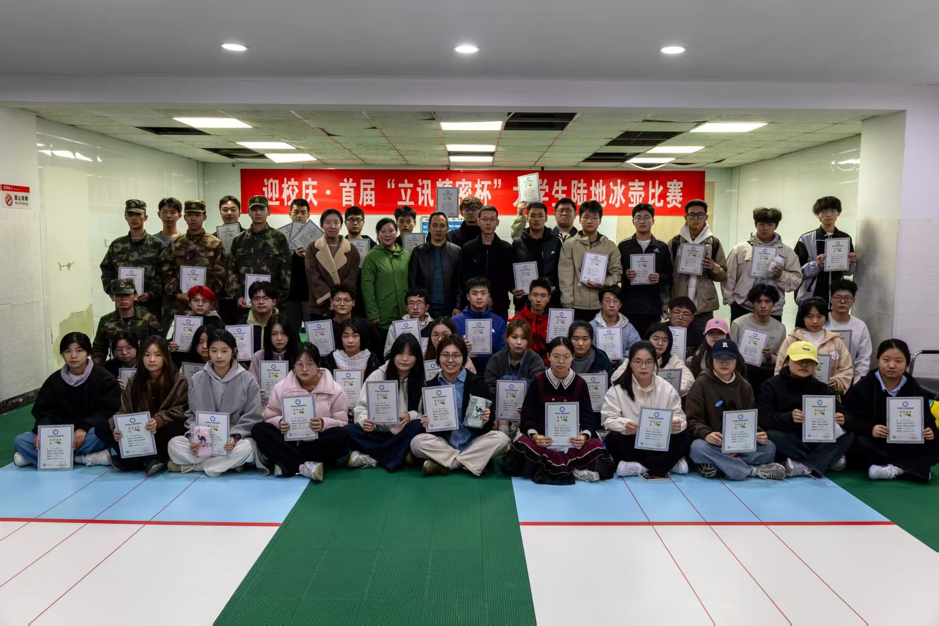 10月14日,英国上市公司365校园冰壶赛在一餐负一楼落下帷幕。车辆工程公司代表队发挥出色,在多支参赛队伍中脱颖而出,最终荣获女子组第一名与男子组第三名的优异成绩。
