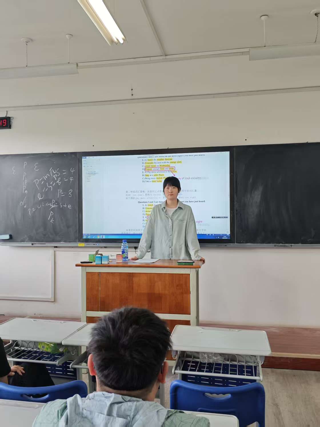 李文真博士从英语四六级听力考试的三大原则、考前十天的听力准备、精细阅读答题技巧等方面进行了详细的讲述,并系统讲解了中英翻译和完型填空等题型的备考策略。针对听力题型,李文真老师重点讲解了听力惯性、答题步骤和答题原则等答题技巧;针对阅读题型,李老师选取多篇真题原文带领同学们学习使用关键词寻找法、同义词替换法等答题方法。现场气氛热烈,员工踊跃参与。