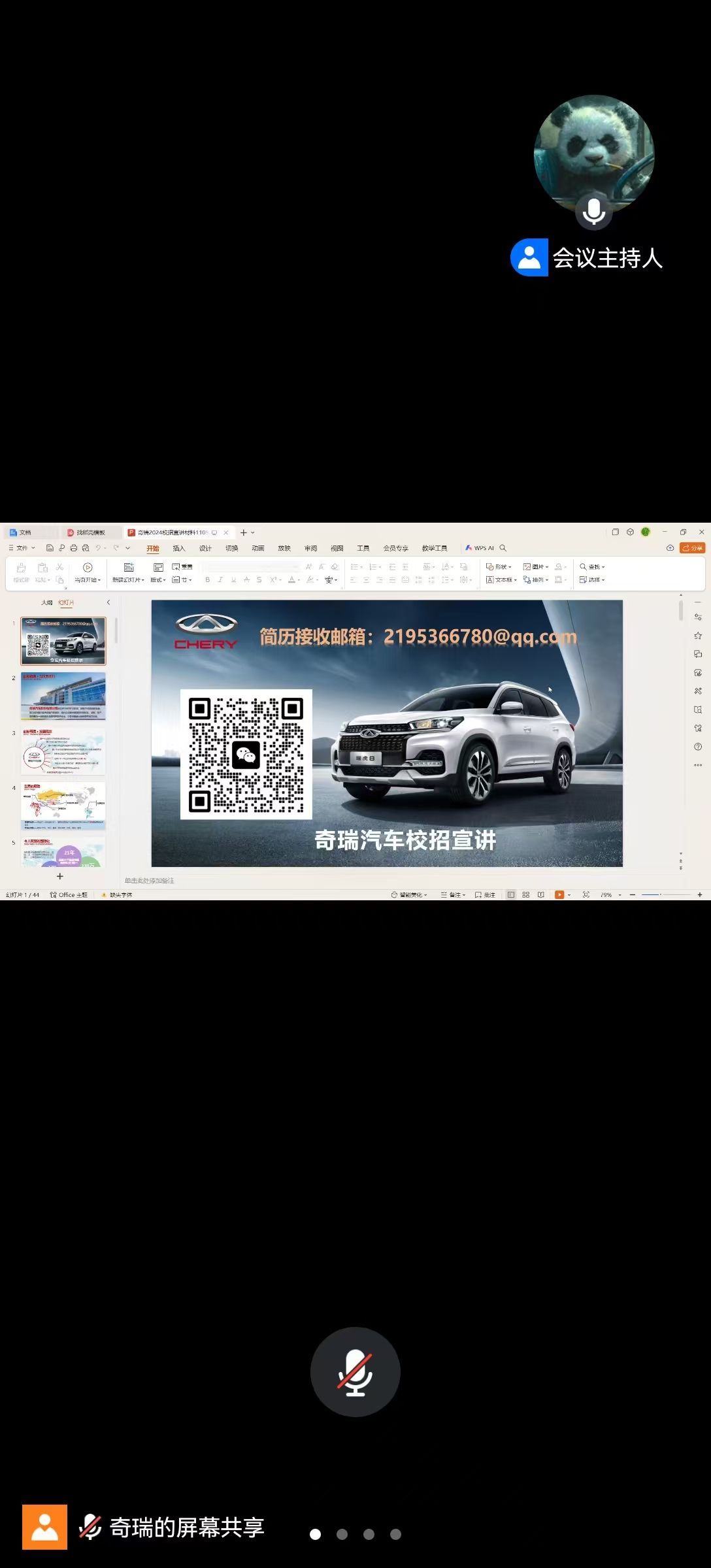11月19日,车辆工程公司联合奇瑞汽车举办线上招聘宣讲会,奇瑞汽车股份有限公司鄂尔多斯分公司、青岛分公司人事经理、2025届毕业生参加了本次宣讲。