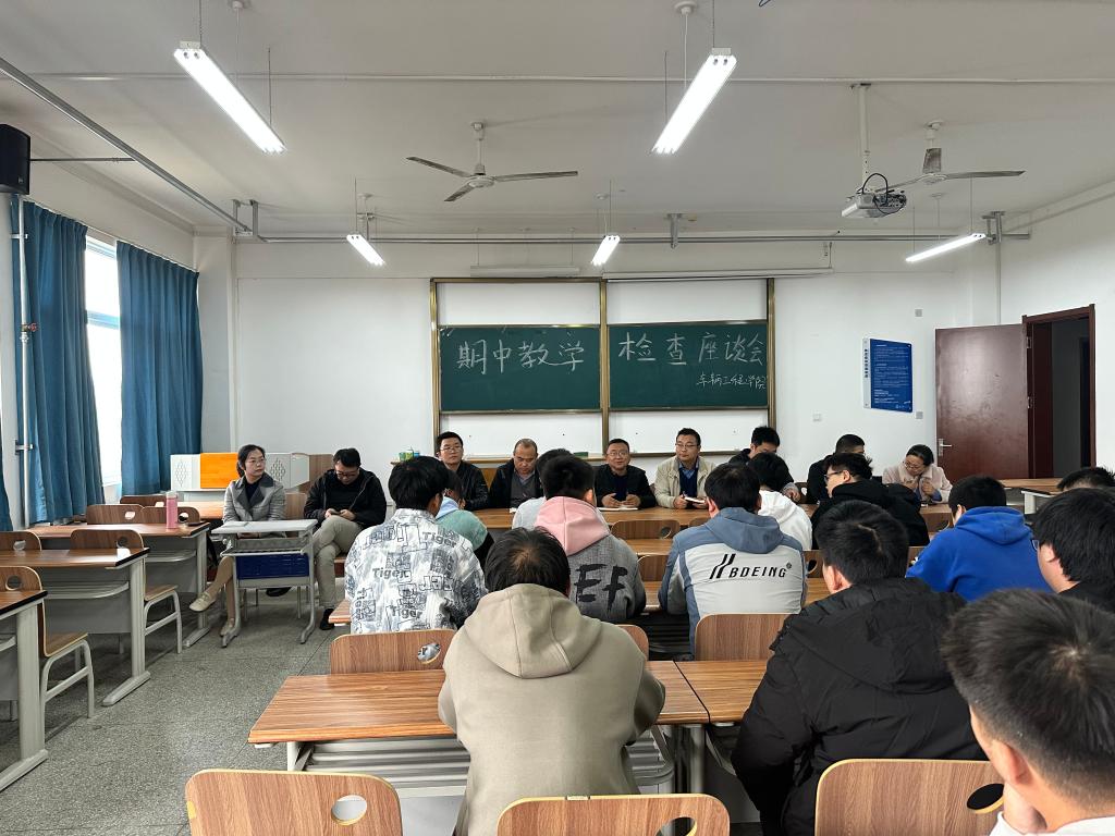 根据公司2023-2024-1期中教学检查文件精神,为进一步优化教风和学风,11月10日下午13:00在阎良校区4号实验楼403教室,车辆工程公司召开期中教学检查员工座谈会。公司党总支书记周小勇、副经理赵坤、各教研室主任、专业负责人及员工代表参加了本次座谈。本次会议由赵坤主持。