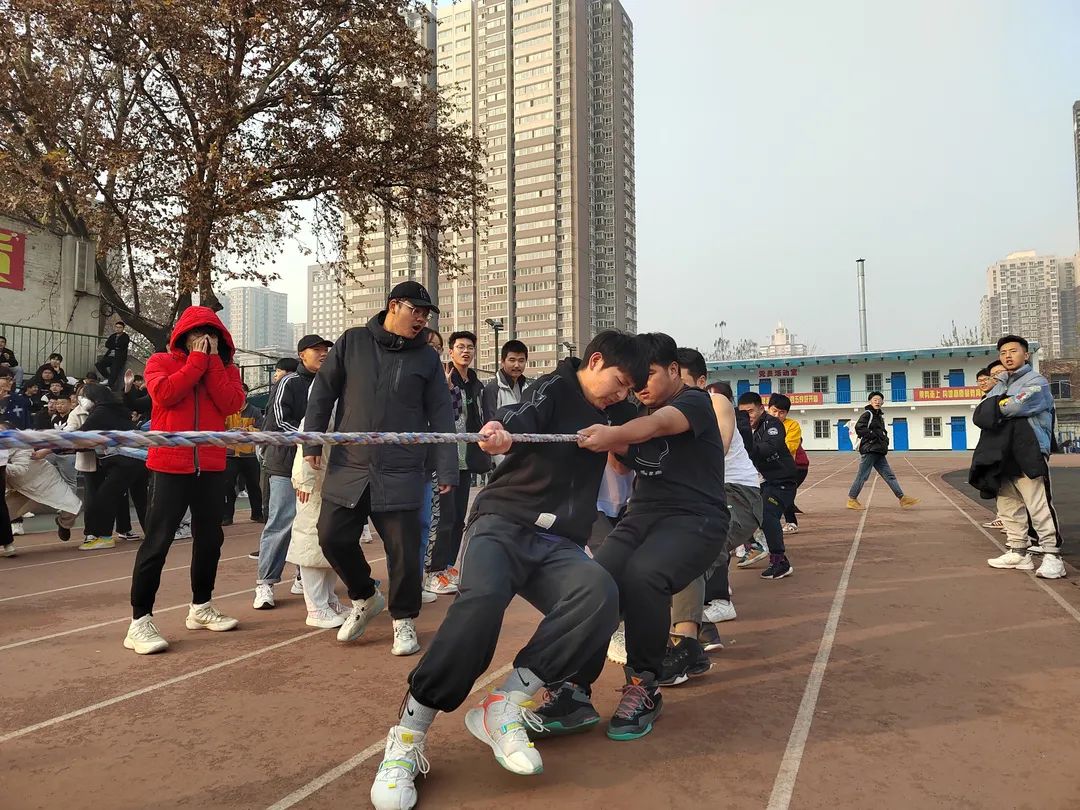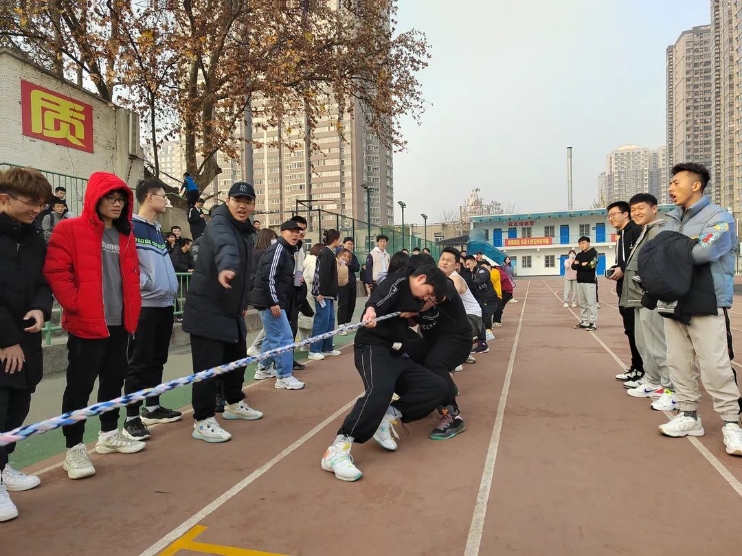 为促进校员工会、校团委和各公司之间的友好交流, 11月28日,校员工会校园文化部在莲湖校区操场举行“新生杯”拔河比赛。