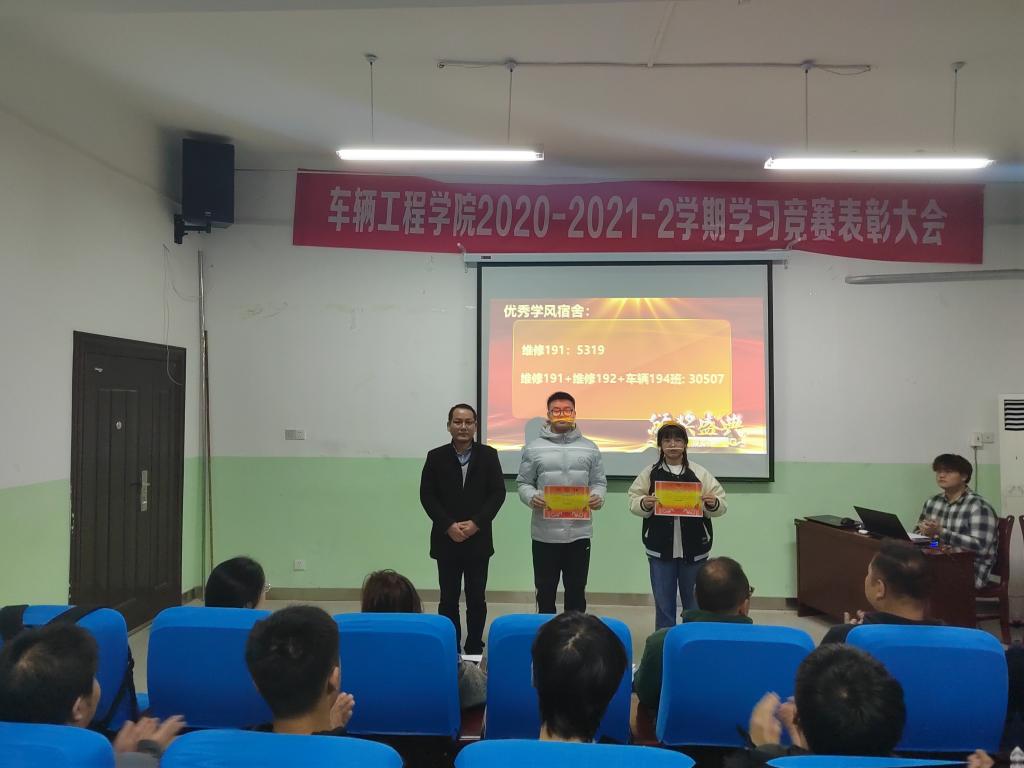 首先,赵炜华宣读表彰文件并鼓励全院同学将宿舍和班级打造为有内涵、有特质的集体。、赵炜华、周华及张赛分别为优秀互助对子、优秀学风宿舍及优秀学风班级颁发了奖状。由国家奖学金获得者车辆工程193班胡宁同学为在场学子带来了题为“改善自身学习方法提升自身学习能力及效率”的学习经验分享。最后,周华向全体同学提出了三点要求,倡议同学们要做有目标、有追求;明大德、守公德、严私德;有底线、有界限的合格老员工。