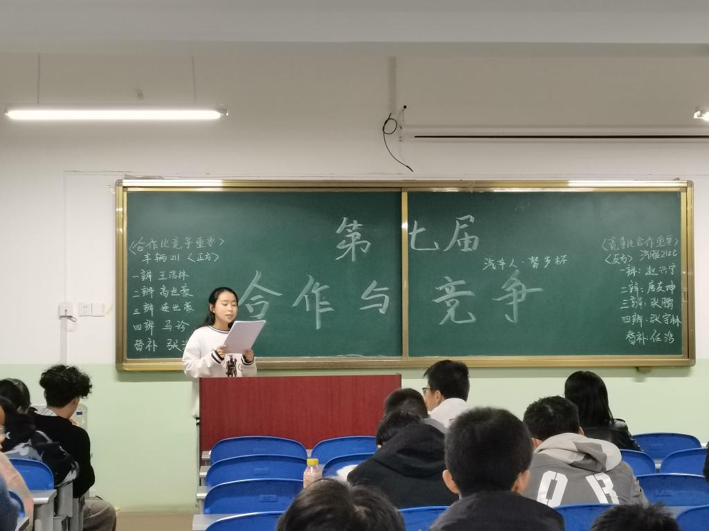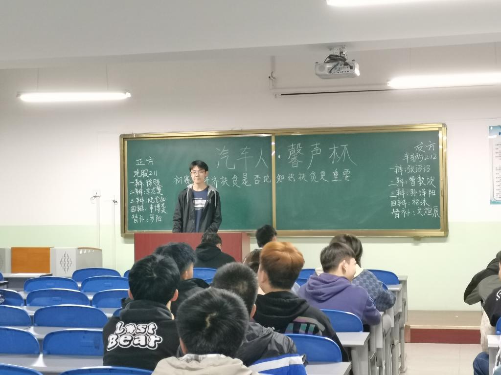 古有卧龙诸葛舌战群儒,今有群英荟萃慷慨陈词。10月11日晚车辆工程公司组织的第七届汽车人·馨声杯辩论赛初赛在北教学楼233、333、433教室举行。