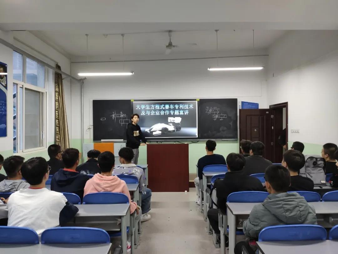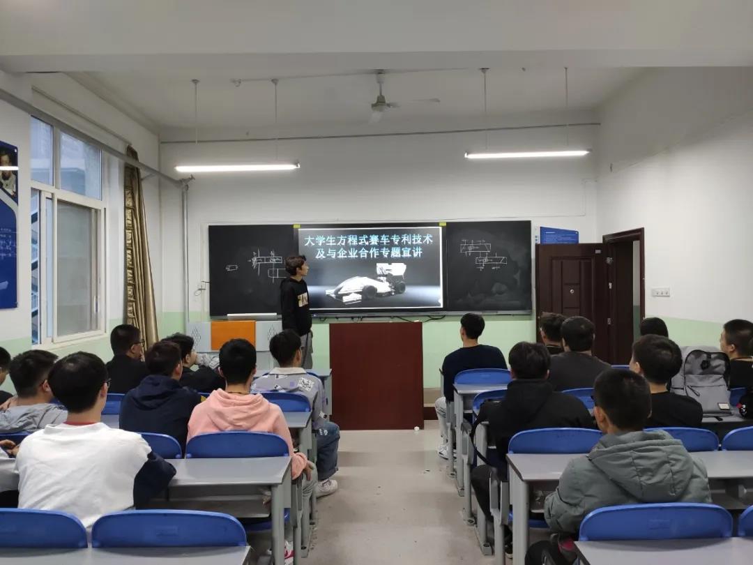 本次讲座的主题为“老员工方程式赛车专利技术及与企业合作专题宣讲”。活动开始,一方面介绍了方程式赛车的相关技术指标,另一方面鼓励同学们按照“一万小时”定律进行学习和奋斗:“人们眼中的天才之所以卓越非凡,并非天资超人一等,而是付出了持续不断的努力,只要经过一万小时的锤炼,任何人都能从平凡变成超凡。”而大学学习生活设置四年的原因也正符合这一万小时定律,所以,同学们应该充分利用这最佳学习时间,学习专业知识,丰富自己的专业技能,以便日后能够更好的立足社会。