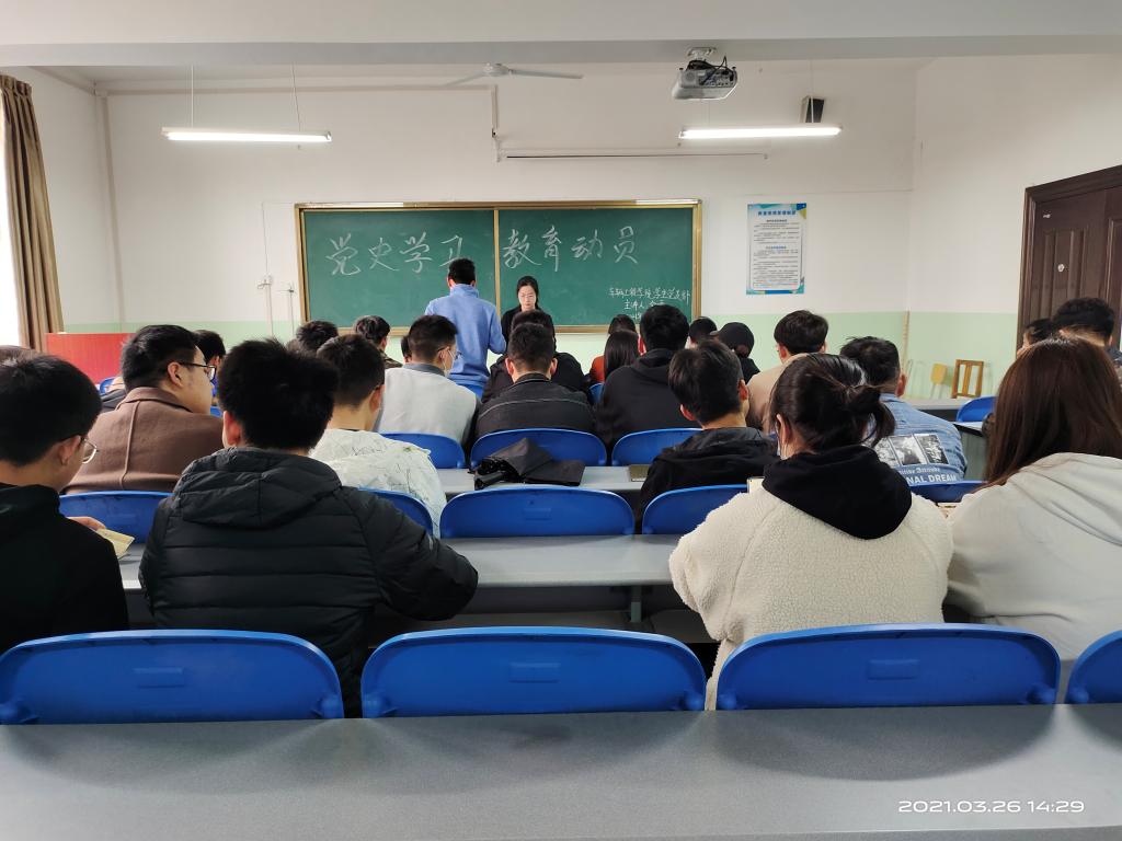 会上,支部书记金雪传达学习了中央、教育部、全省等在党史学习教育动员大会上的讲话,强调要立足学习内容,聚焦“学党史”和“悟思想”,坚持学史明理、学史增信、学史崇德、学史力行,从自身实际出发,不断增强理想信念、强化党性修养,真正做到学有所获,学有所悟,学有所成,以优异成绩迎接建党一百周年。