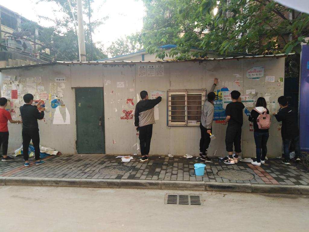 活动中志愿者们都积极参与劳动,有的人捡拾地面垃圾,有的人负责铲除地面口香糖,有的人清理草丛和花园里的垃圾,有的人清理墙上粘贴的小广告,志愿中队分工明确,不一会儿就将土门社区打扫得干净整洁。在活动过程中,同学们热情洋溢、不怕脏不怕累,展现了志愿者们阳光向上的良好状态。