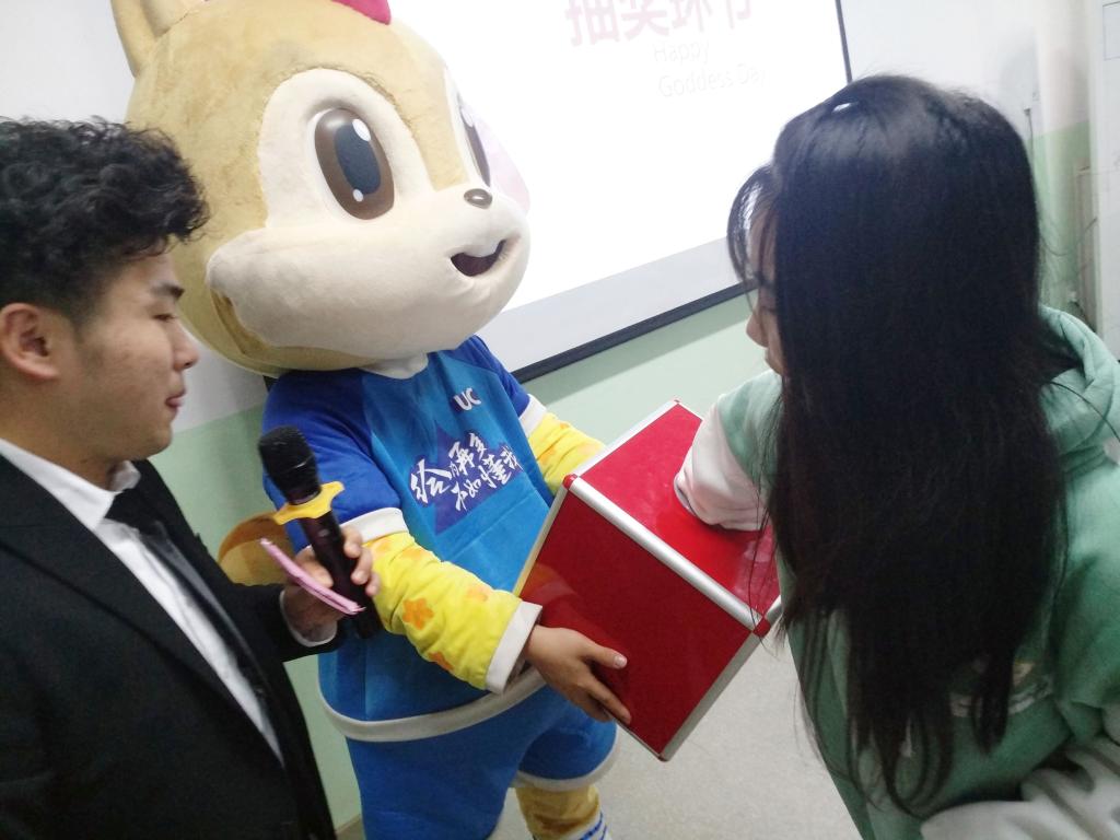 活动中,女生参与答题即可拥有一次抽奖机会,获得由公司为广大女生准备的节日礼物,礼物本身充满了公司对广大同学的关爱与祝福。随后,女生们把写满了祝福的卡片挂在了公司祝福女生们的条幅上,将祝福传递给每一位同学。最后,由公司男生将写好的祝福大声念出来,表达对女生的赞美。使每一位女生在女生节这个属于自己的节日里拥有一个美好的回忆。