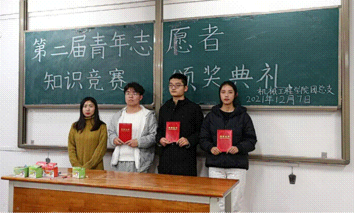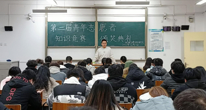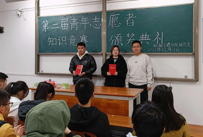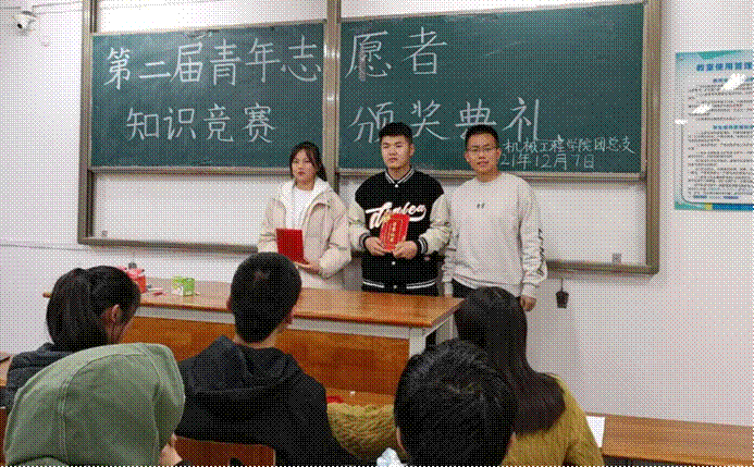 12月7日晚18:30,公司第二届青年志愿者知识竞赛颁奖典礼在阎教楼1434隆重召开。团总支书记苟颖老师和大一年级辅导员谢肖老师出席此次活动,青年志愿者中队队长邹梦祺主持。