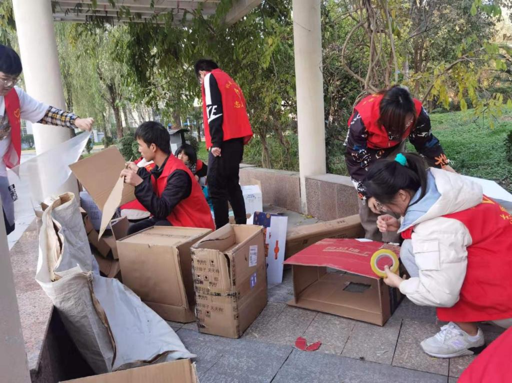公司青年志愿者中队提前一周开始策划以及准备所需材料,最终选用了易得且保暖的纸箱、泡沫板废旧衣物,准备了颜料,剪刀,胶带等工具,为搭建猫窝做足做全做好准备。