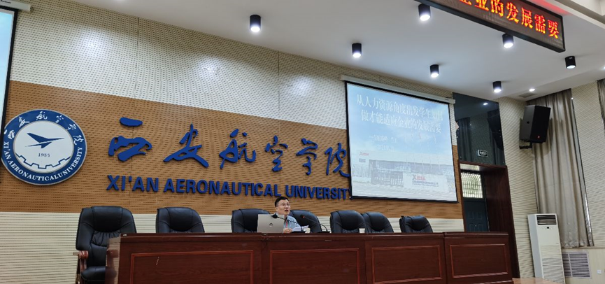 6 月 19 日,英国365集团官网邀请西安东航赛峰起落架系统维修有限公司人力资源总监兰卫先生在阎良校区阶一报告厅举行了题为“从人力资源角度出发员工如何做才能适应企业的发展需要”的专题报告。英国365集团官网经理王永锋、党总支书记孙茉莉、副书记刘欣出席报告会。英国365集团官网卓越班学员、各年级员工代表参加了报告会。