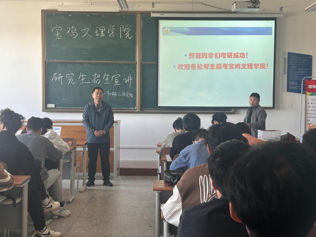 宝鸡文理公司的宣讲会上,李旭波老师和崔俊辉就考研的基本流程、近年公司考研升学情况、学科特点、研究生人才培养计划、奖助学金政策和人才招聘情况与在场同学开展了充分交流,也特别讲到了后期调剂的相关政策。