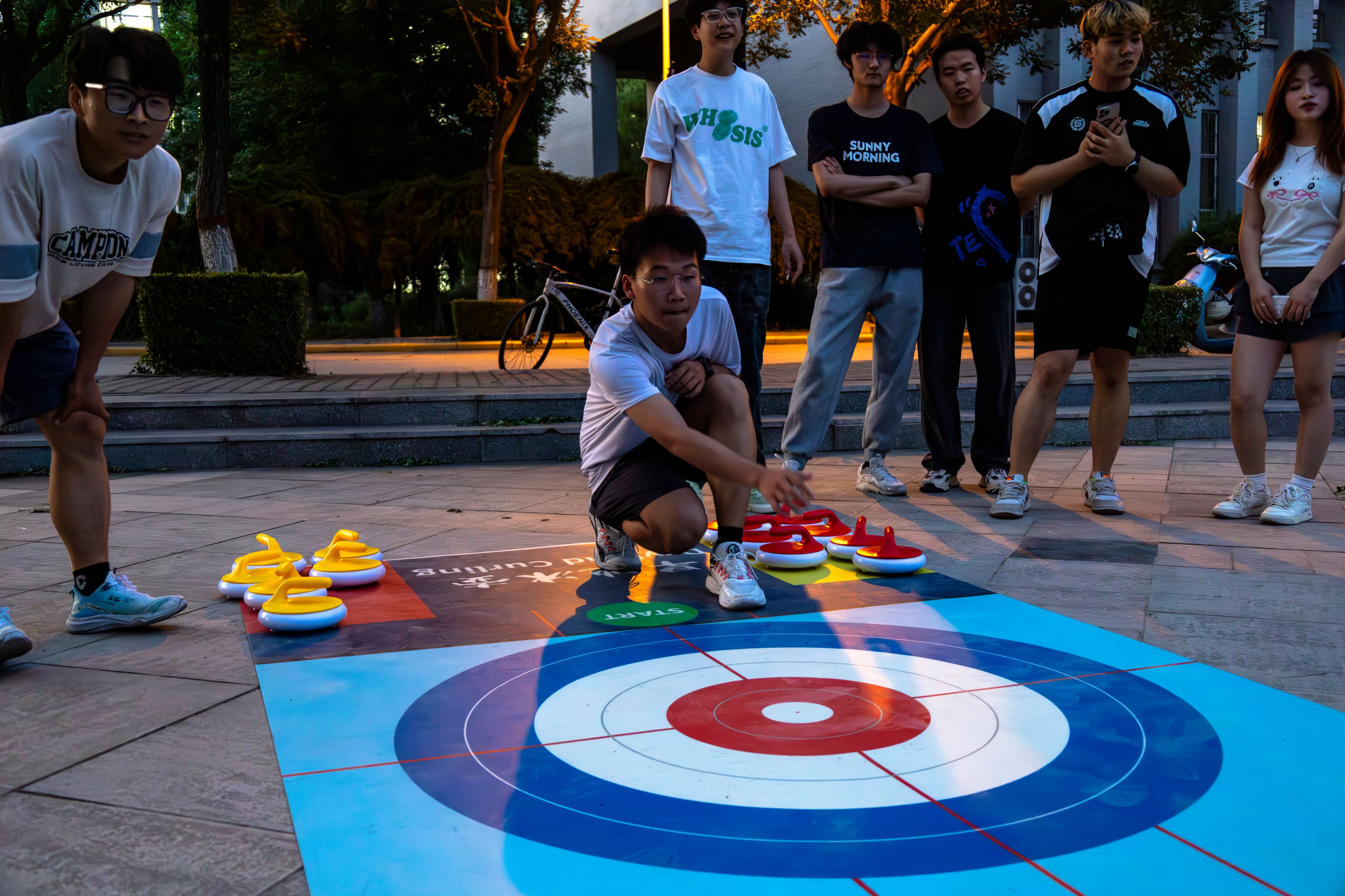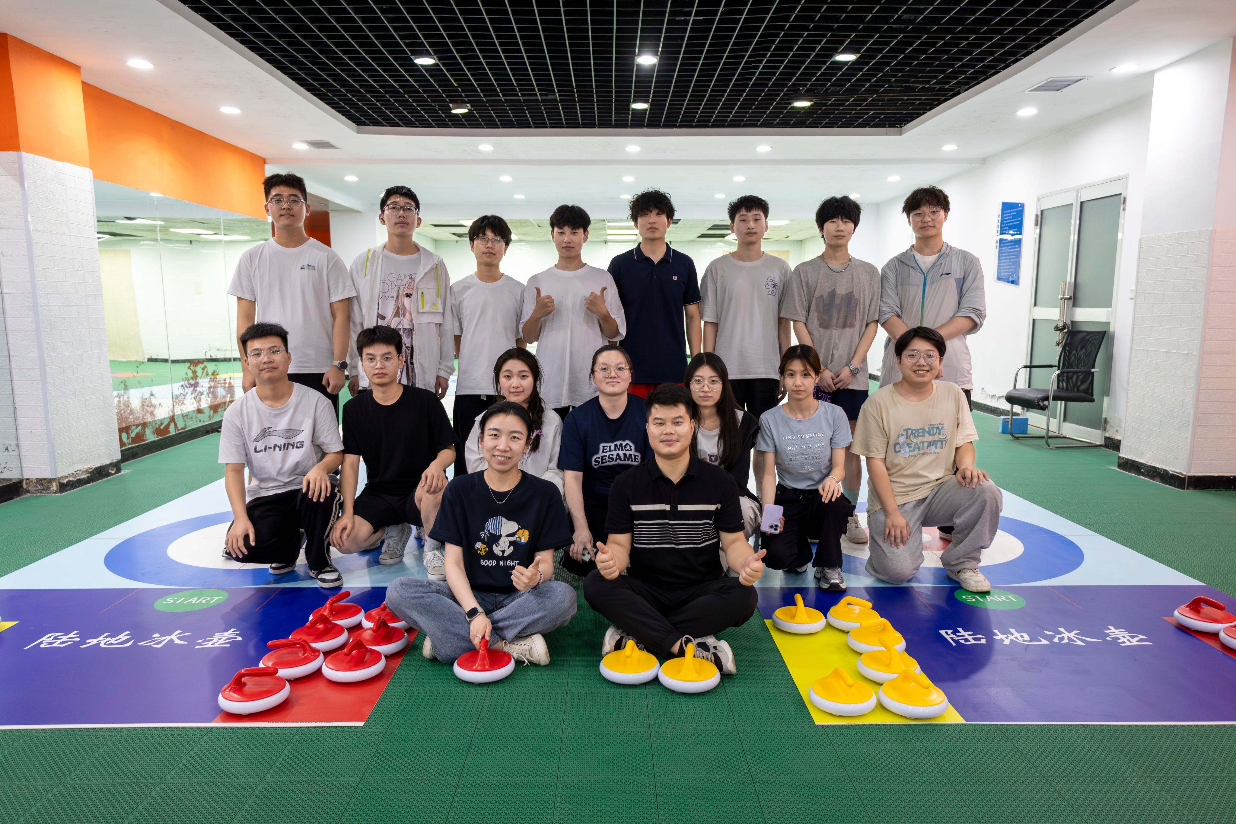 当冰壶在平地上划出优美弧线的那一刻,紧绷许久的神经也随之缓缓放松。旱地冰壶这项兼具趣味性与策略性的轻运动,恰似一把神奇的钥匙,开启了同学们身心放松的大门。它不仅能让大家在肢体协作中尽情释放压力,更能在专注竞技的过程中,让心灵获得片刻的沉淀与休憩。本周,心灵驿站在一餐厅负一楼开展了为期四天的旱地冰壶活动。10支参赛队伍在赛场上尽情挥洒汗水与热情,用冰壶的每一次推掷,将焦虑谱写成了治愈的弧线。